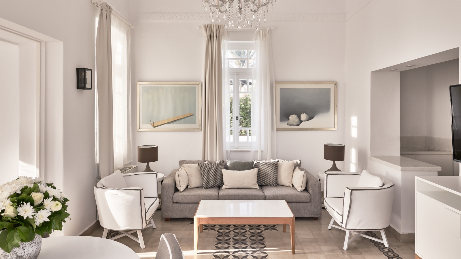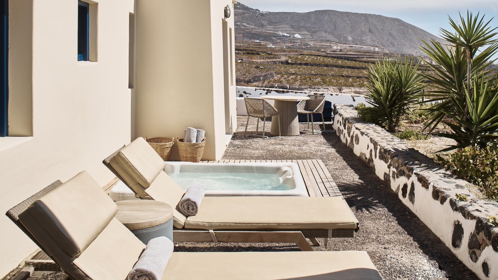 The 59 suites and villas are spacious and offer views out over the garden, vineyards, village or Aegean sea. Some suites include terraces, pools and outdoor Jacuzzis, so that guests can enjoy both the luxury of their suites and the outdoors in privacy.