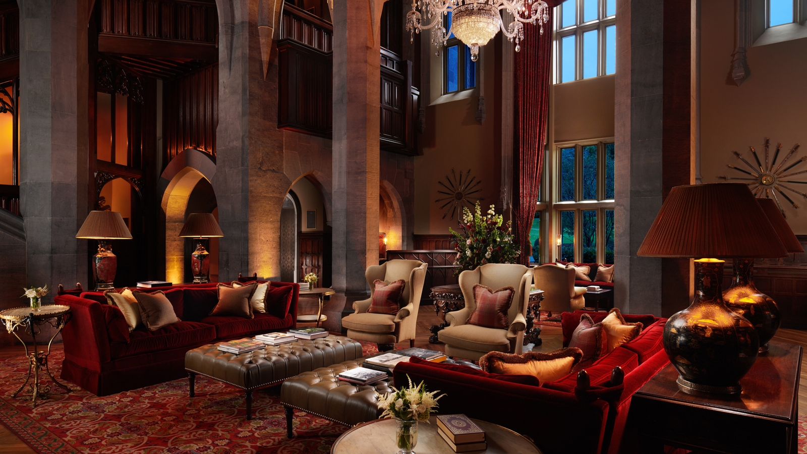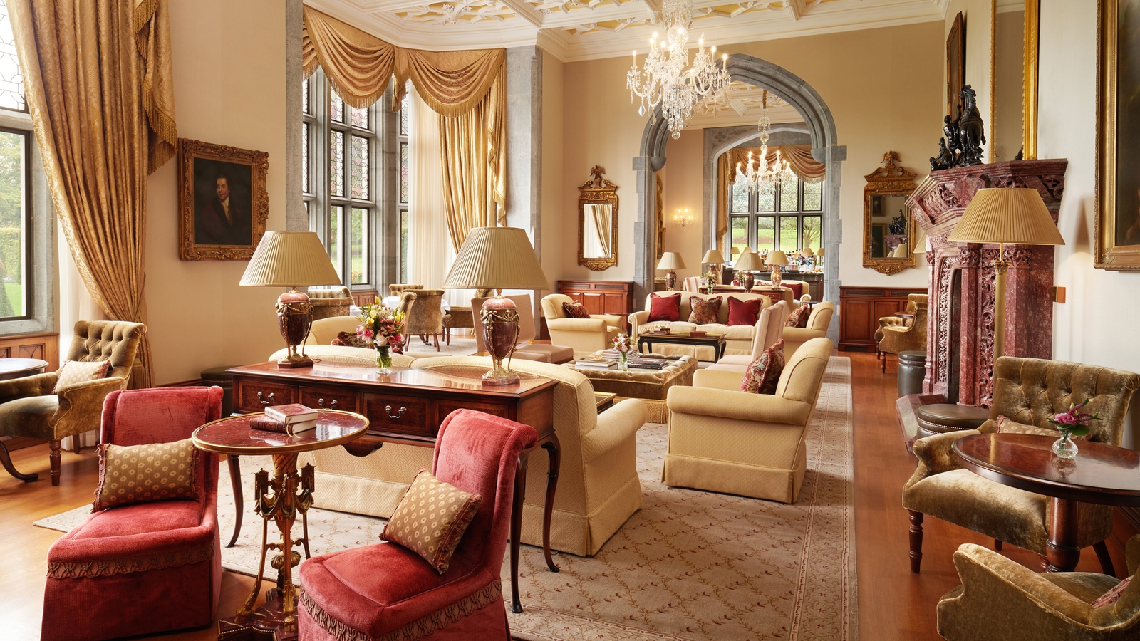 Adare Manor is located in the picturesque village of the same name, surrounded by 840 acres of pristine parkland. The manor house, built almost two centuries ago, has been meticulously restored with great care taken to maintain the building’s heritage. The original timber in the doors, paneling and floors was repaired, stone floors and walls gently cleaned and lime plastered walls and ceiling restored.