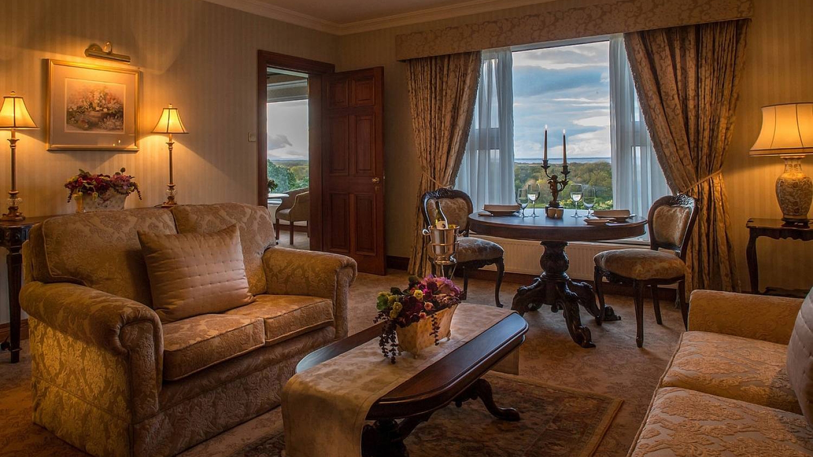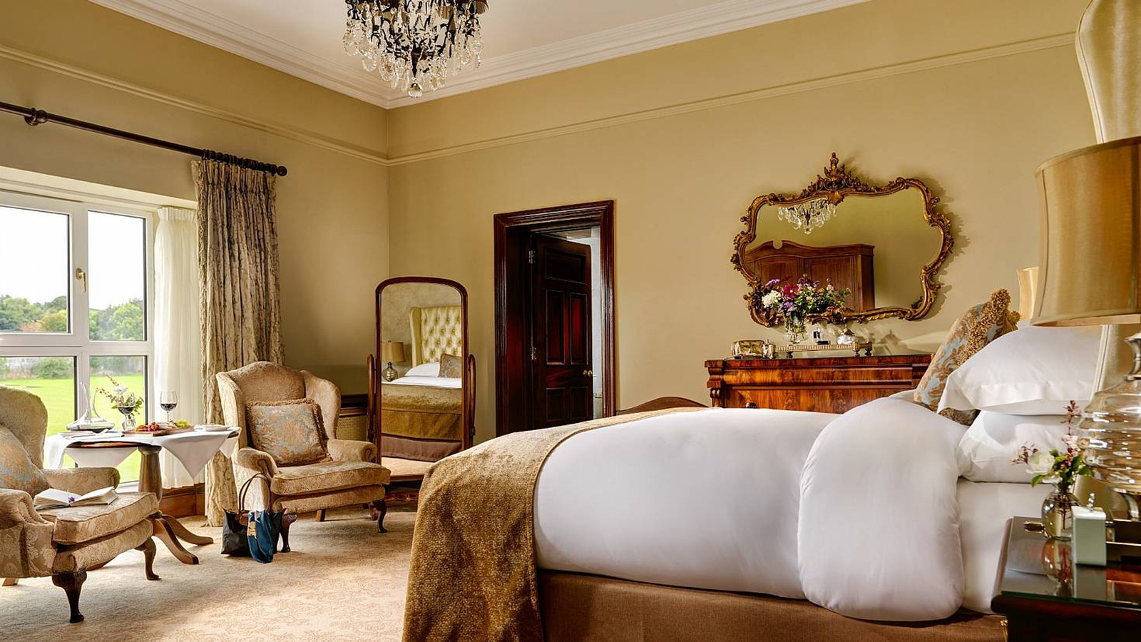 The 46 bedrooms and suites evoke a wealthy 19th century manor and are all vastly spacious, some with uninterrupted views of the dramatic West of Ireland landscape and some with views of the River Corrib, Lower Lough Corrib, Connemara, and the 18th Century Abbey and Walled Garden.