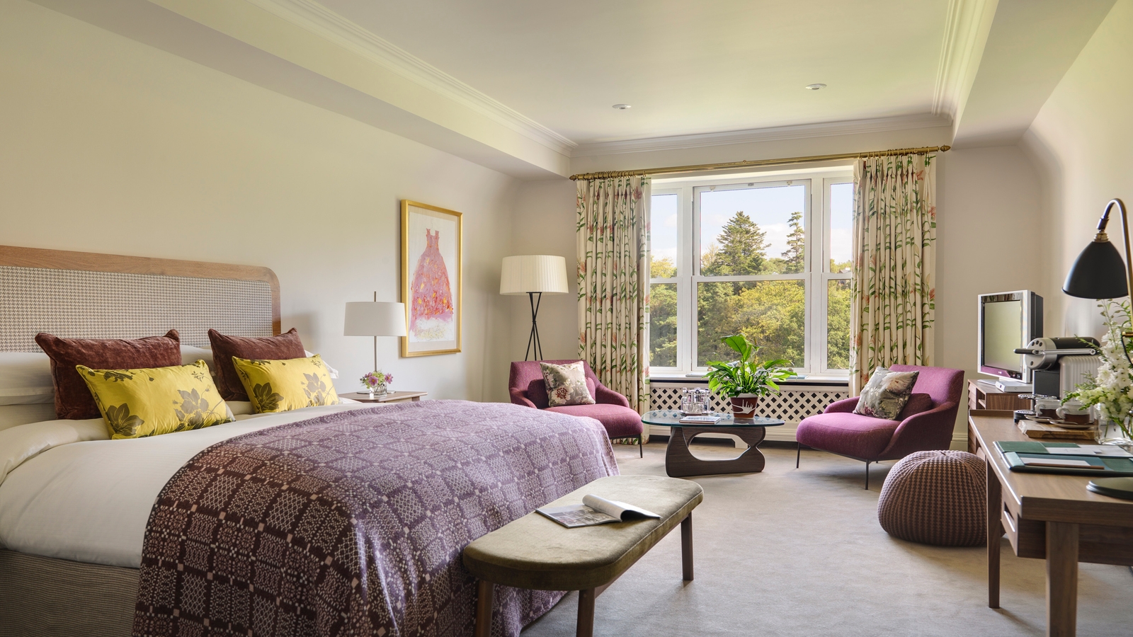 Found within each of its rooms is luxury and comfort at every turn. Some feature open fireplaces and serene views over either Kenmare Bay or the cascading Sheen Waterfalls, providing the perfect haven in which to unwind.