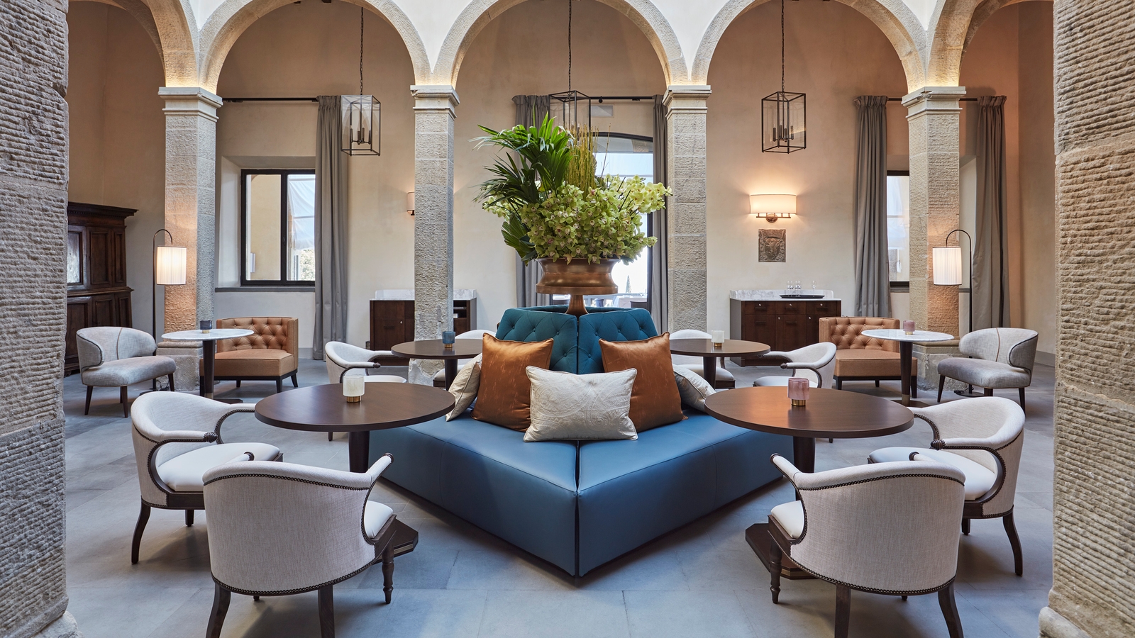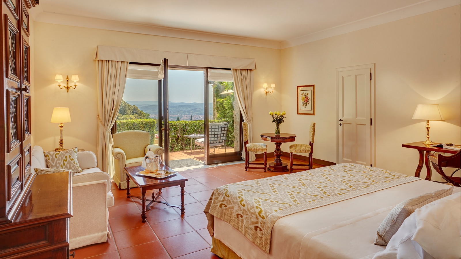 Each of the 20 rooms and 25 suites are unique, with sumptuous antiques, along with cotto-tile flooring and bright Florentine textiles. Separate from the main building, the exquisite Limonaia Villa contains three suites located in the convent’s former orangery, all with incredible views. These can be connected together to create perhaps the most glamorous villa in Tuscany, a unique haven for families and groups of friends, or for a special occasion such as a wedding or exclusive party.