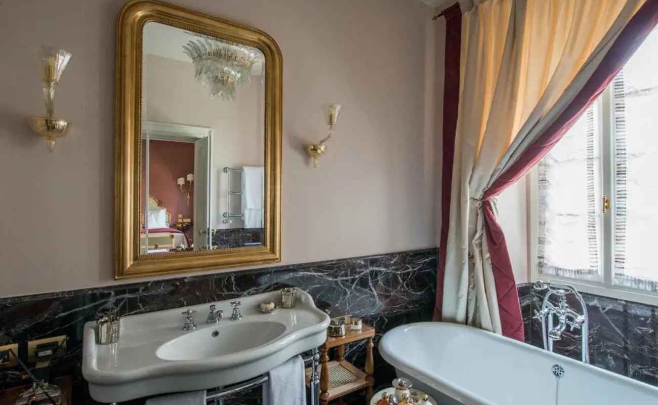 Set across the original palazz (building) and within an additional private villa, there are 20 rooms in total in this magnificent property. The eight rooms of the palazz are decorated in jewel-toned walls, in-keeping with the interiors from yesteryear, with imposing 200-year-old oak beams and lamps of the finest Venetian silk overhead. The Villa has twelve extraordinary rooms and suites with high ceilings, ornate stuccos and traditional floors from the building’s 18th-century origins combined with modern comforts for a truly luxurious stay.