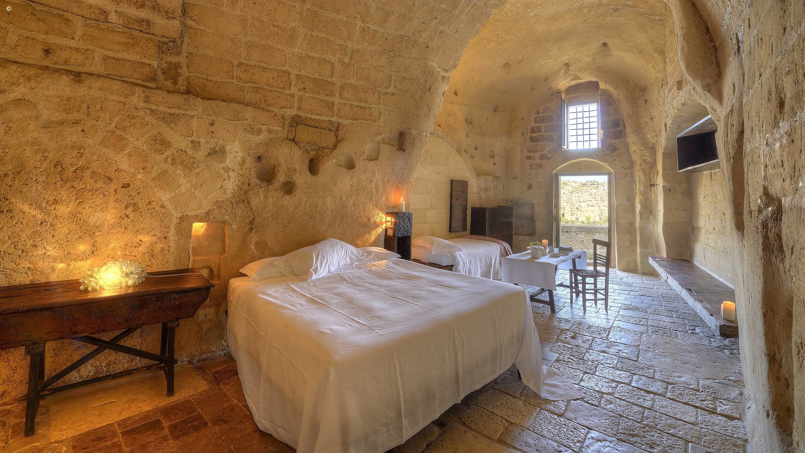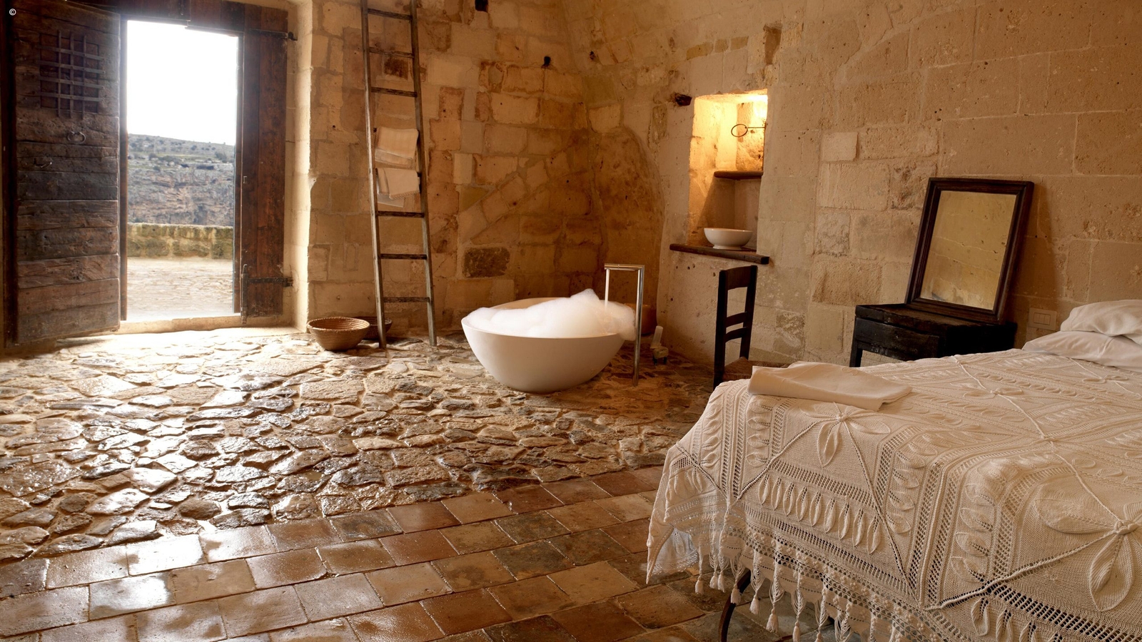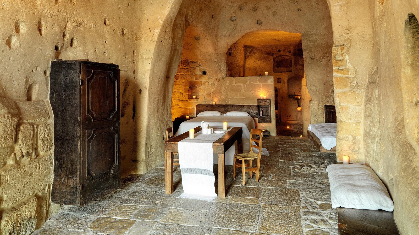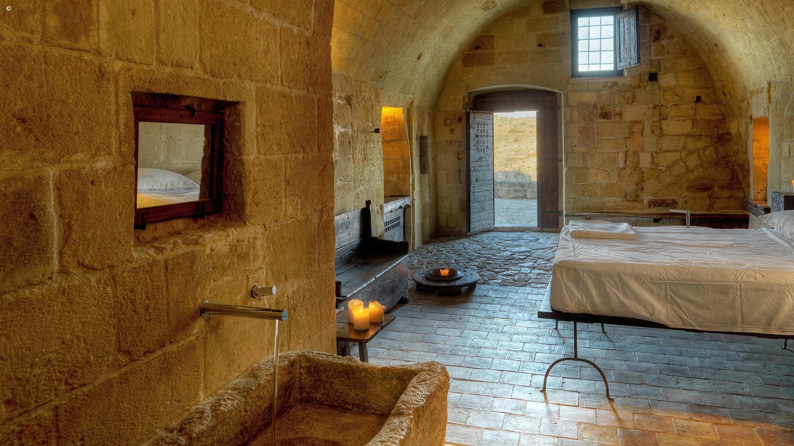 Buried deep into the oldest part of the Sassi is the Sextantio Le Grotte della Civita, an ancient cave dwelling that has been turned into a wonderfully atmospheric boutique hotel.