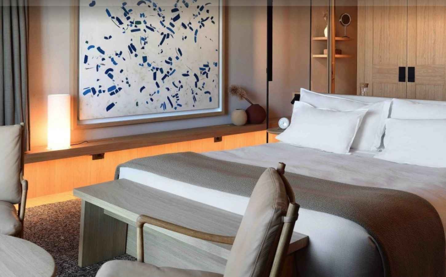 There are 39 rooms and suites within the hotel, spanning 6 different categories. Each room category offers comfort, elegance and a chance to connect to the natural surroundings through large picture windows and the sustainable, natural materials used in the decor and design. Neutral tones and a paired back, yet luxurious, theme runs throughout the hotel, only adding the feeling of calm and space.