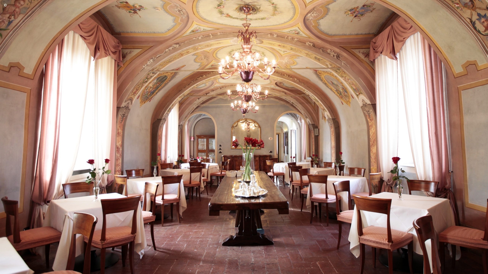 The hotel’s elegant rooms and suites are full of character, each one unique in its design. Some come with ancient fireplaces and private gardens, while suites have their own balconies and Jacuzzi. Decor is elegant and refined and befitting of its origins as a monastery.