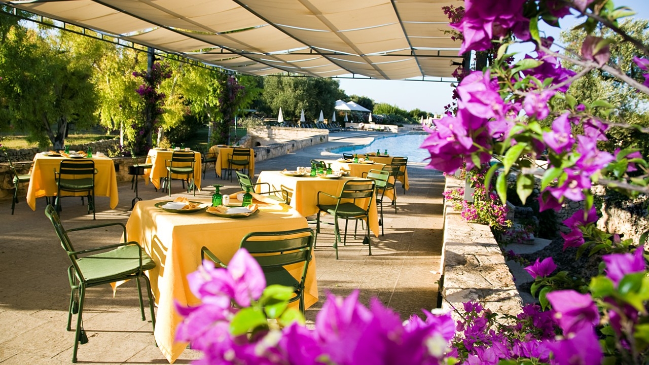 Unsurprisingly for the area, the dining here is spectacular with a choice of settings in which to take your meals; there’s an elegant eighteenth-century dining room, the poolside bar or by the sea in a relaxed restaurant. The traditional recipes served by the local chefs are mostly prepared with fresh ingredients and home-grown vegetables. Typical products from the area and excellent wines give guests the essence of Puglia. The hotel has its own spa, wellness area and The San Domenico Golf course is stunning, with views out to sea and to the mountain range in the distance.