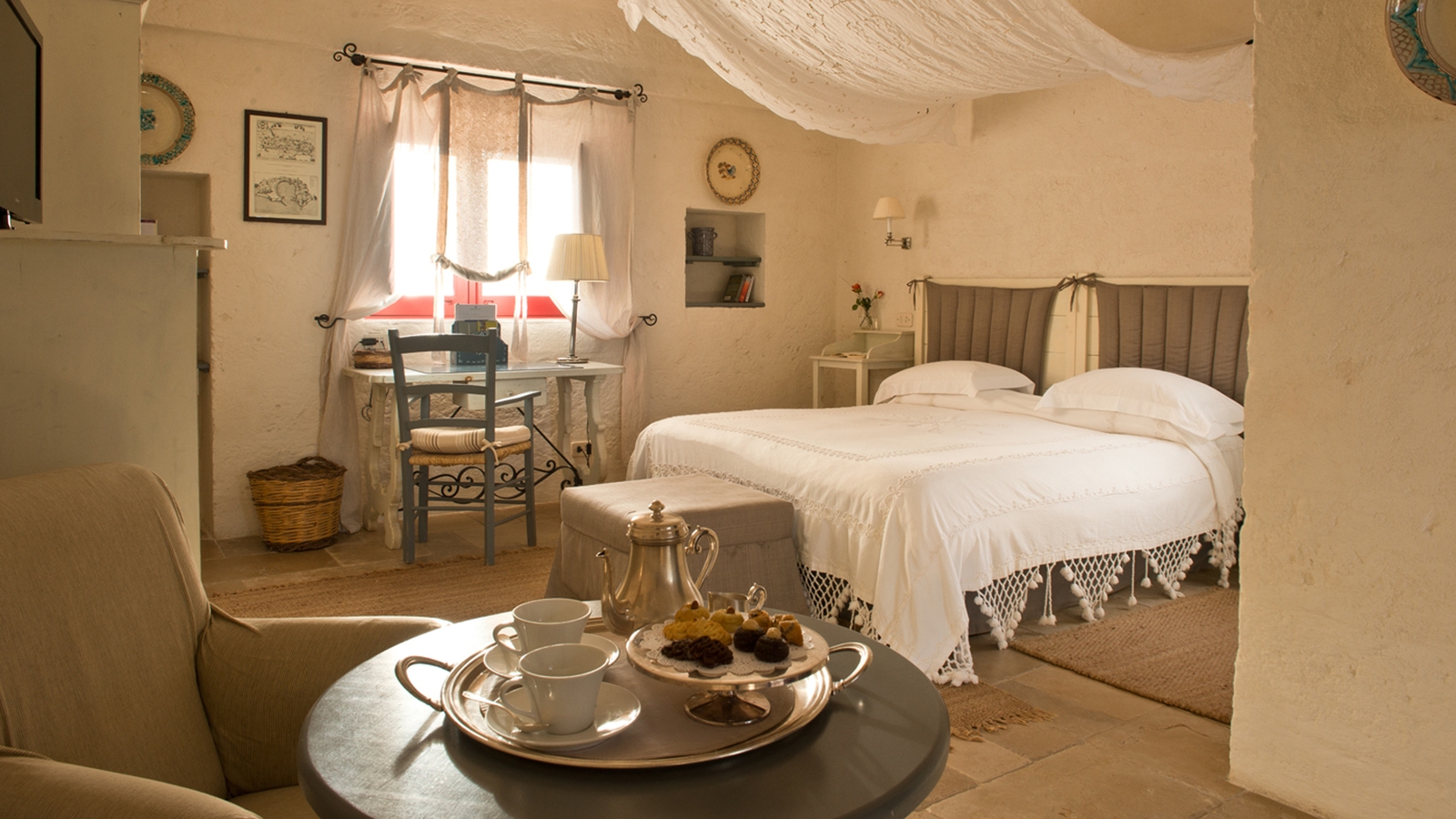 The Masseria Torre Coccaro is an elegant and historic fortified country house between the town of Fasano and the Adriatic Sea and surrounded by ancient olive groves. The 36 unique rooms and suites at this boutique hotel are all elegantly furnished with period antiques and modern charm. One suite sits in the tower – built as a defense against Saracen invasions – with beautiful sea views and a cosy fireplace, and another is set into the bedrock, with a large dining area, private garden and Jacuzzi.
