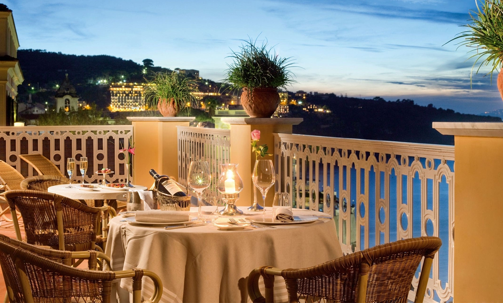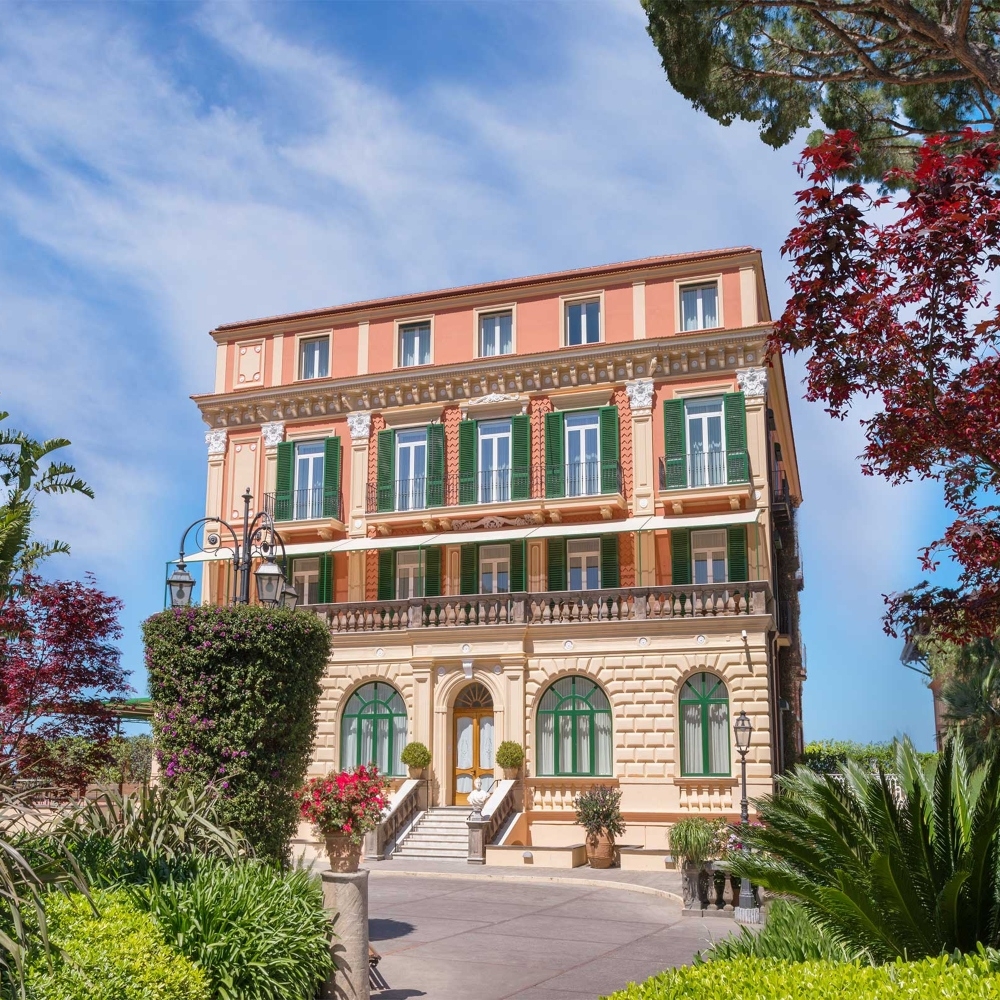 Propped atop a cliff, with a sweeping panorama of the Bay of Naples and Mount Vesuvius, this superbly presented resort centre dates back to 1834 and is ringed by a garden, awash with lemon trees and olive groves. An extraordinarily tasteful example of Belle Epoque architecture, Grand Hotel Excelsior Vittoria is a delightful composite of marble, plush furnishings, nude tones and arched ceilings.