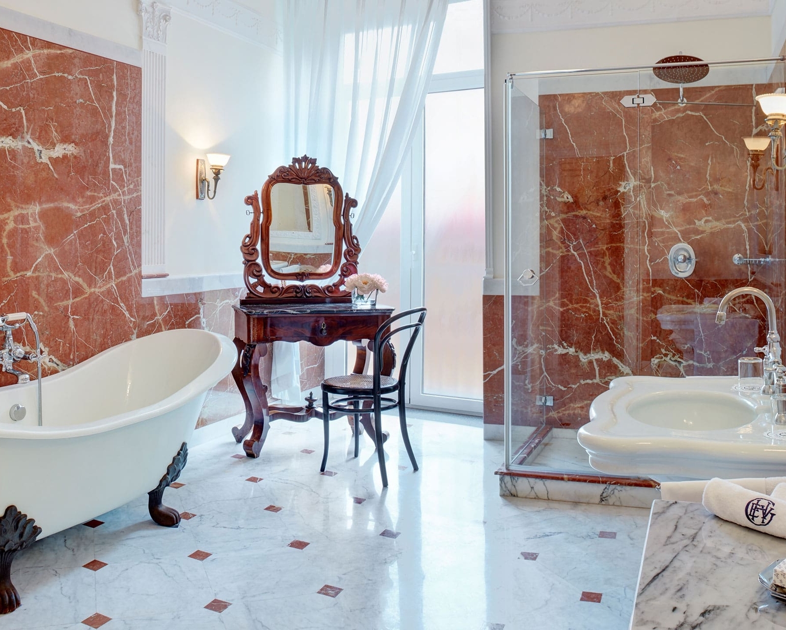 Upon entering, you’ll be greeted by a vintage concierge desk before being led to one of the 79 tastefully decorated rooms or suites. Interiors encompass antique furniture, oil paintings and frescoed ceilings, with expansive windows facing the garden or sea. Some include private terraces and pianos, along with original period elements and separate living spaces.