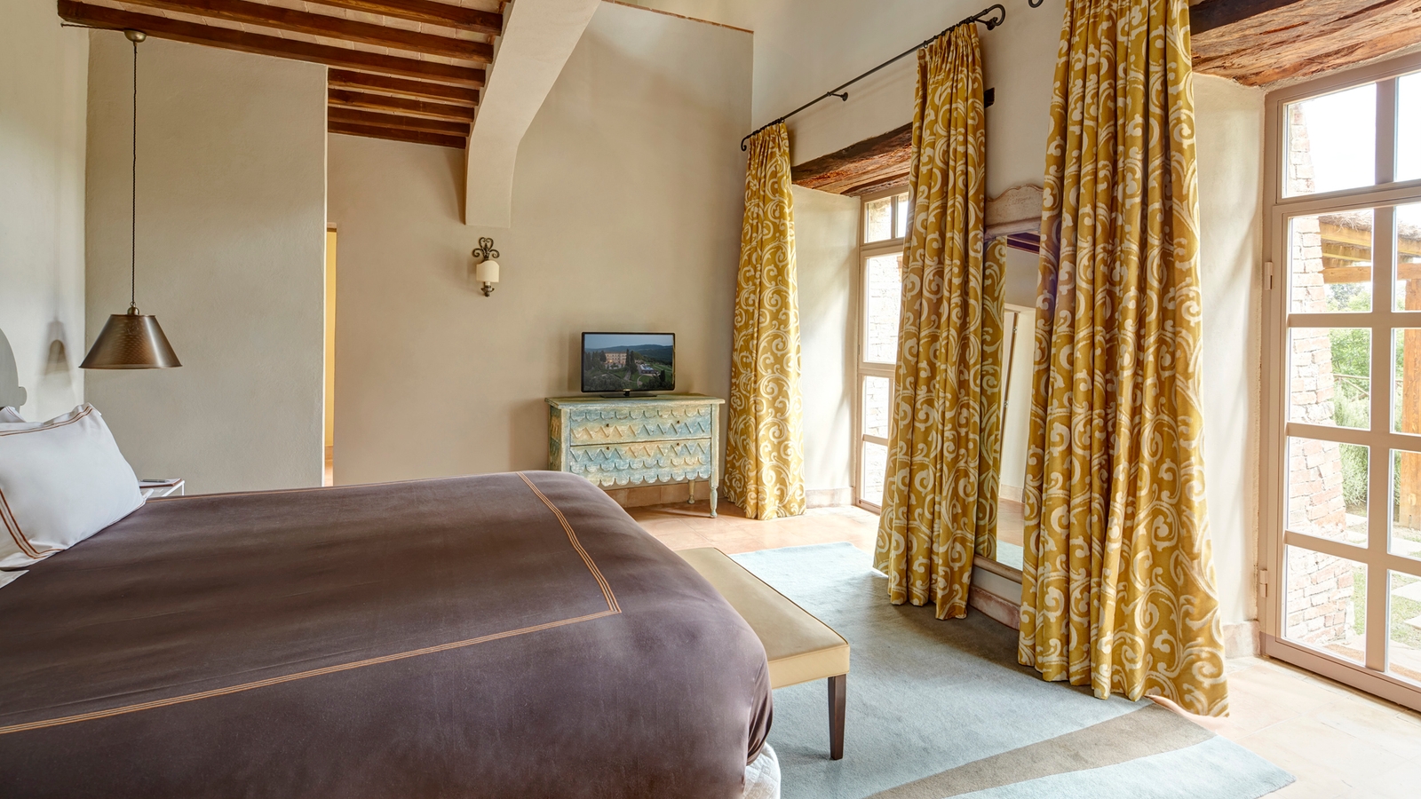 Despite its size, the castle has just 39 rooms and suites, giving it an intimate feel. Rooms have plenty of character with original wood-beamed ceilings and stone walls, luxurious fabrics and a mix of antique and contemporary furniture. Most have views of the Tuscan countryside, looking out over the estate’s vineyards and olive groves.
