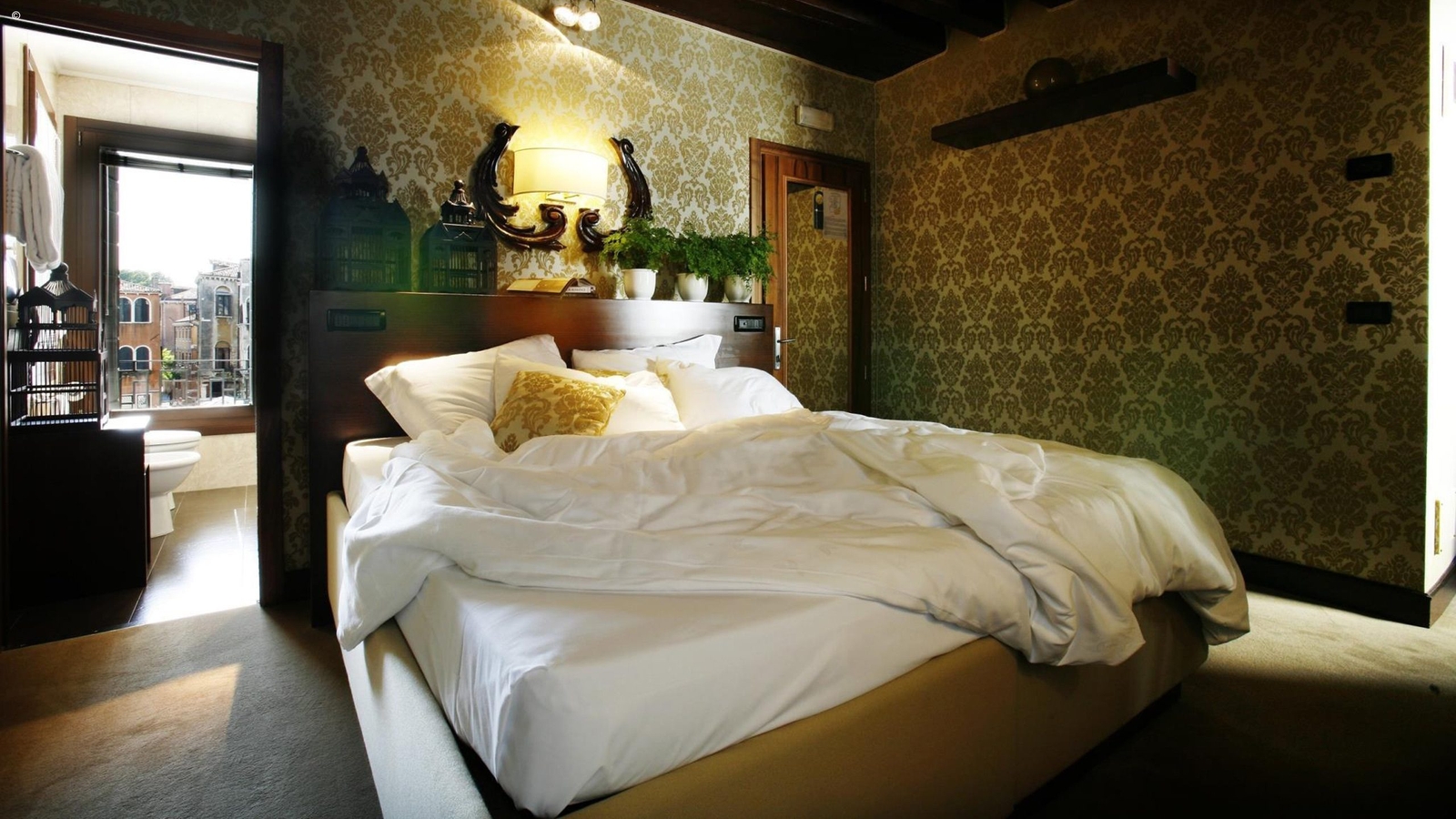 There are just twelve sumptuous rooms, including two suites and five themed rooms inspired by Venice’s history, such as the Oriental Room, a nod to the travels of Marco Polo, and the Doge’s Room, all deep-red damask drapes and gold accents.