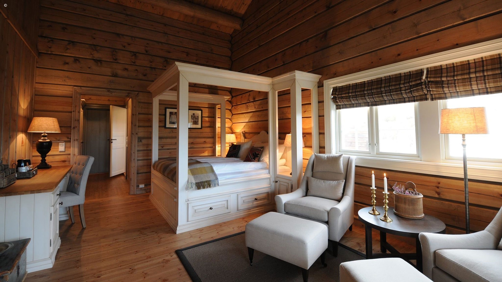 Sitting on a wooded hillside overlooking the dramatic Stor fjord and Sunnmore Alps is an idyllic rural retreat. Dressed with handcrafted log walls, designer furniture and carefully chosen antiques, Storfjord Hotel blends cosy Norwegian tradition with elegant, modern design.