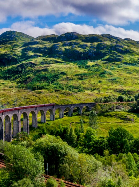 There are also some great options for luxury train travel in Scotland. The Belmond Royal Scotsman departs from Edinburgh and journeys into the highlands, out to the west coast and through the Cairngorms National Park, depending on which route you choose. This is a wonderful way to see the country and the train itself is the epitome of old fashioned glamour. Those who are fans of the Harry Potter films will want to check out the iconic Glenfinnan Viaduct and take a ride on the Jacobite Steam Train, better known as the Hogwarts Express.