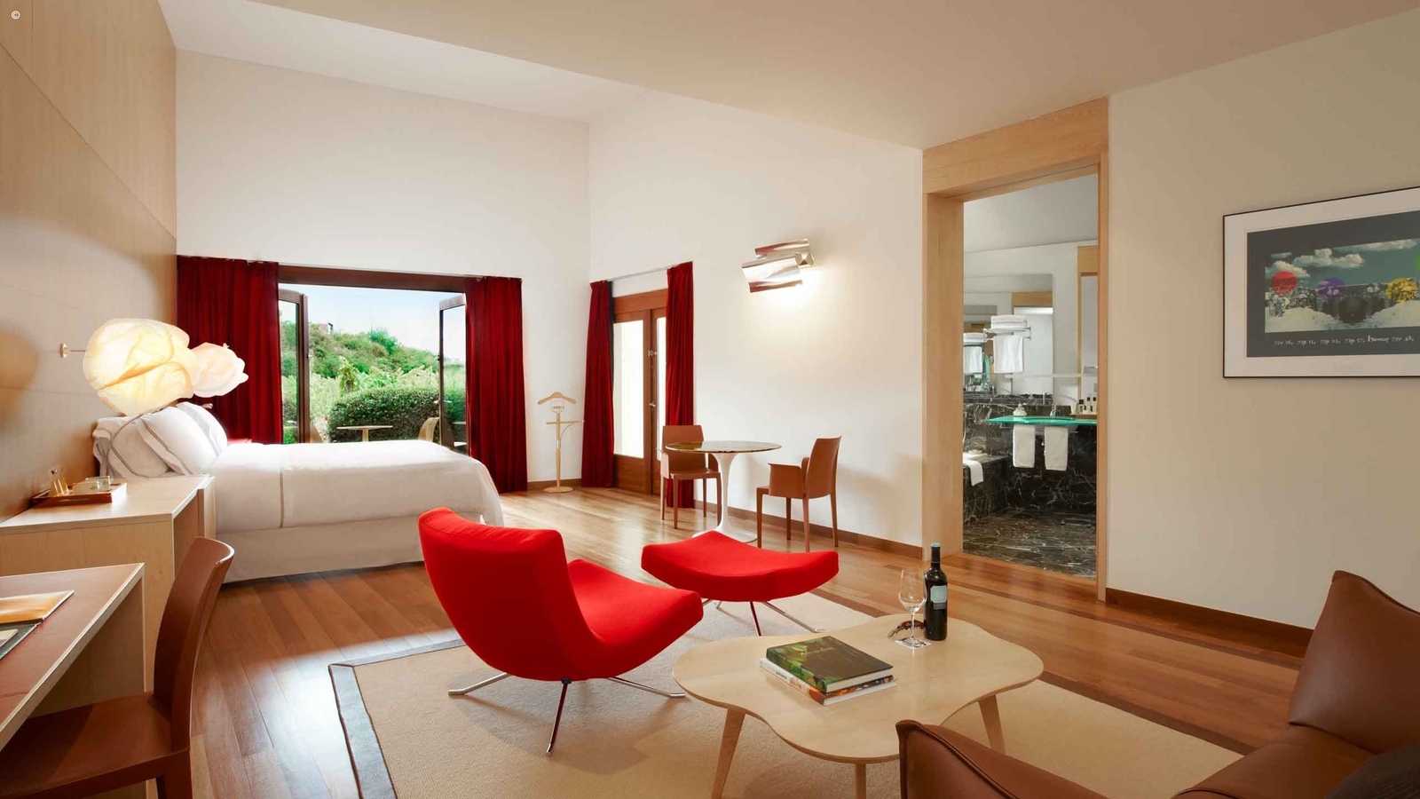 With just 43 rooms divided between two wings connected by a bridge, a stay in this boutique hotel and winery will be an immersive experience. Due to the varying placements of the hotel’s huge windows, each room leaves a difference impression.