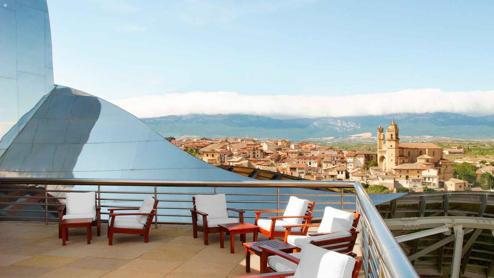 Eye-catching against the green of La Rioja’s hills, Hotel Marques De Riscal’s striking and innovative roof has been designed to reflect the precious liquid that’s produced in the celebrated adjoining winery of the same name.