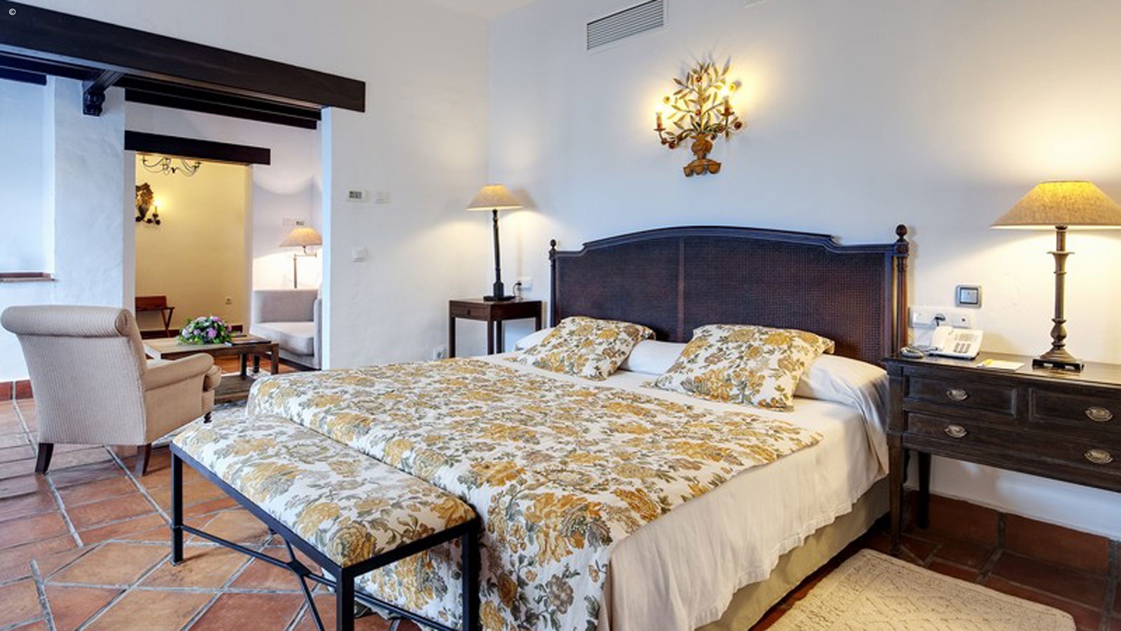 The hotel is designed in the style of a traditional Andalusian palace, and captures the sentiment of the quaint towns of this region on its 100 acres of private land. Each luxury suite has its own unique decor, from polished stone floors to grand marble baths, wooden furnishings and private sweeping terraces. Some rooms also have their own private garden.