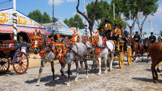 The ‘Real de la Feria’ is the area where the fair takes place, and is lined with thousands of casetas, or tents. While most casetas are invite-only, there’s also seven public ones. Inside these tents, drinks begin to flow and tapas is served around lunchtime – and the party doesn’t stop until the early hours of the morning. Make the most of the Feria by joining in with a dance to some traditional Sevillanas, the folk music of Seville.