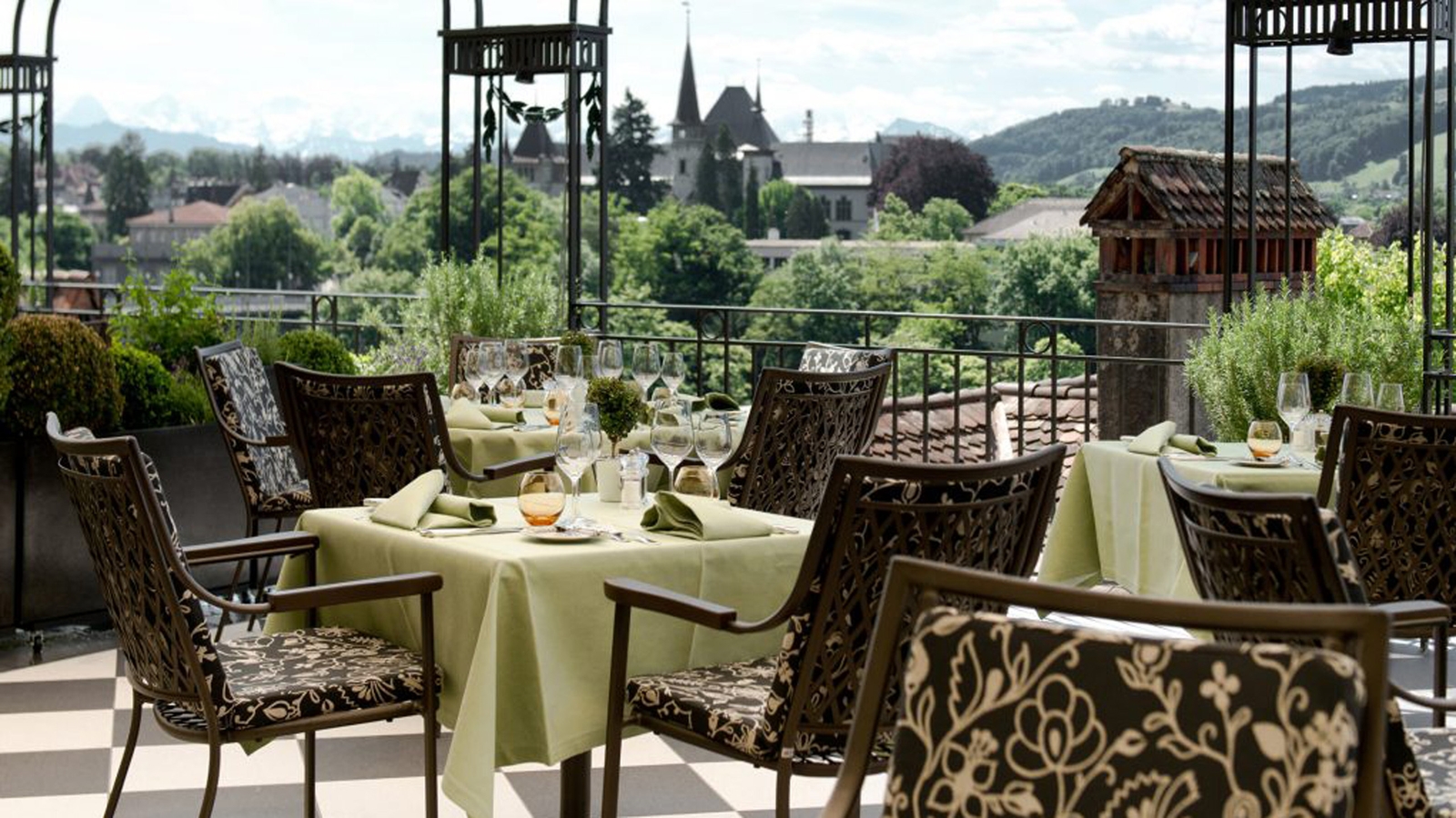 Vue combines traditional Swiss hospitality with classically modern cuisine, and with large crystal chandeliers, vaulted ceilings and views of the River Aare and the Alps from the terrace, it is the perfect place for a memorable meal. Enjoy a tipple at the hotel bar and lounge – with 99 types of gin on offer, it’s not hard to find your favourite – before heading out to enjoy the beautiful city of Bern.