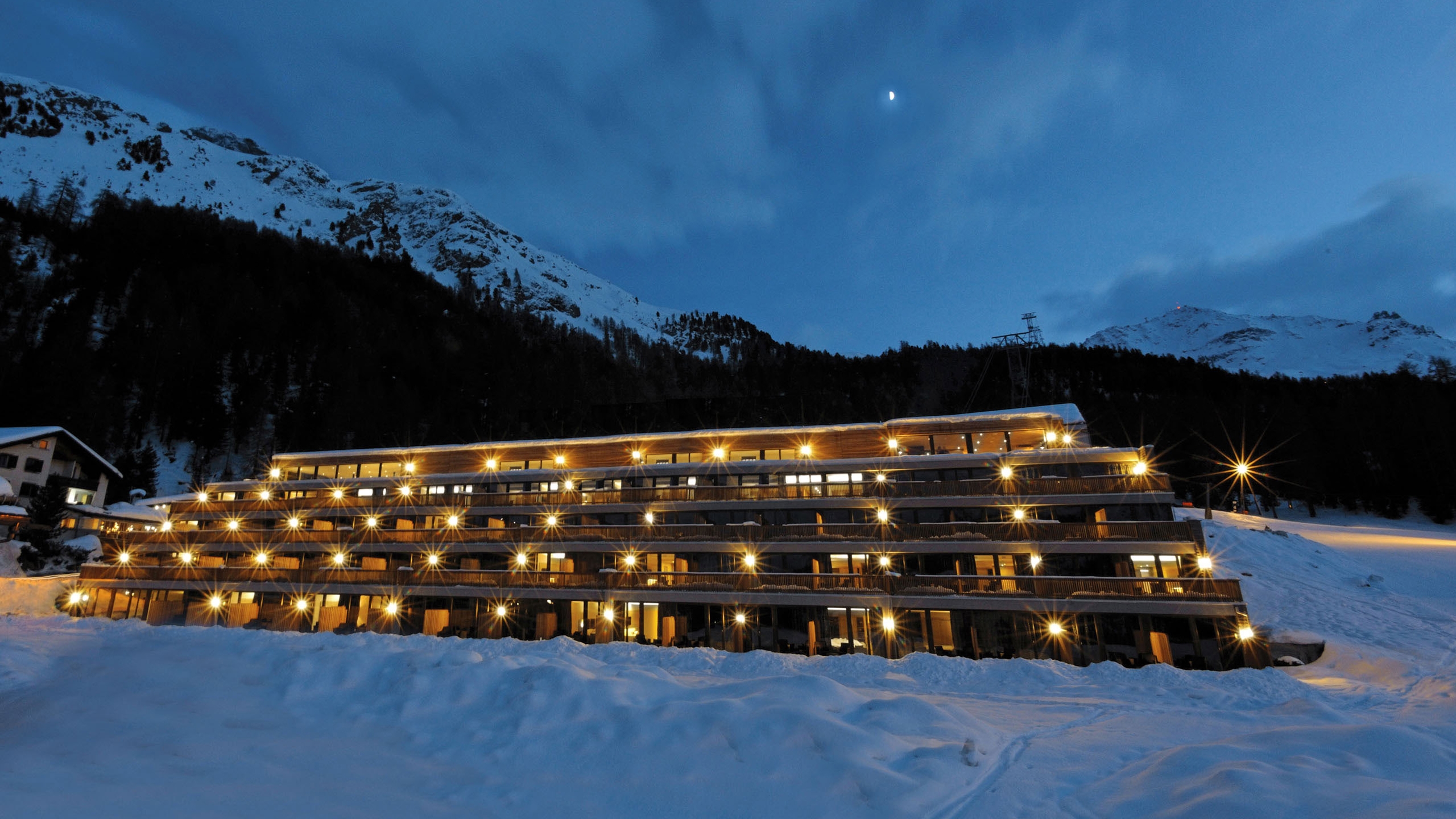 All of the 70 rooms and suites feature large terraces or balconies with panoramic windows overlooking the Engadin mountains.