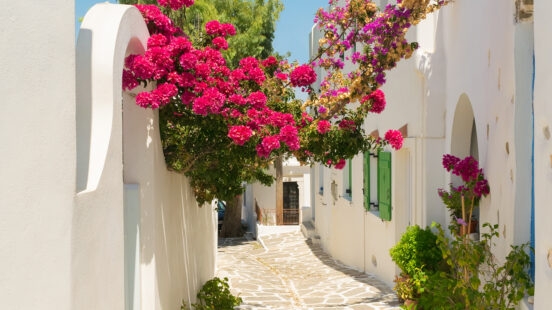 It’s difficult to imagine a more romantic place than Paros, with its winding cobblestone streets, whitewashed houses and colourful flowers. Although it’s the second-largest Greek island, it feels refreshingly calm and cosy.
