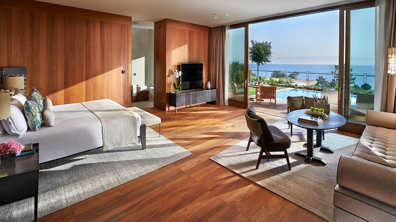 Enjoying a remarkable location alongside the glistening waters of the Aegean Sea on the Bodrum Peninsula, all while offering the utmost in luxury and diverse facilities, Mandarin Oriental Bodrum promises one of Turkey’s most mesmerising and rewarding stays. Comprising 20 or so olive-coloured geometric blocks, the hotel is spread across almost 150 acres, set in tiers down a wooded hillside towards inviting strips of sandy beach and the clear blue of the sea. Stylish interiors with Asian character will greet each guest, with the hotel dotted with teak and muted marble, while also interspersed with modern artwork.