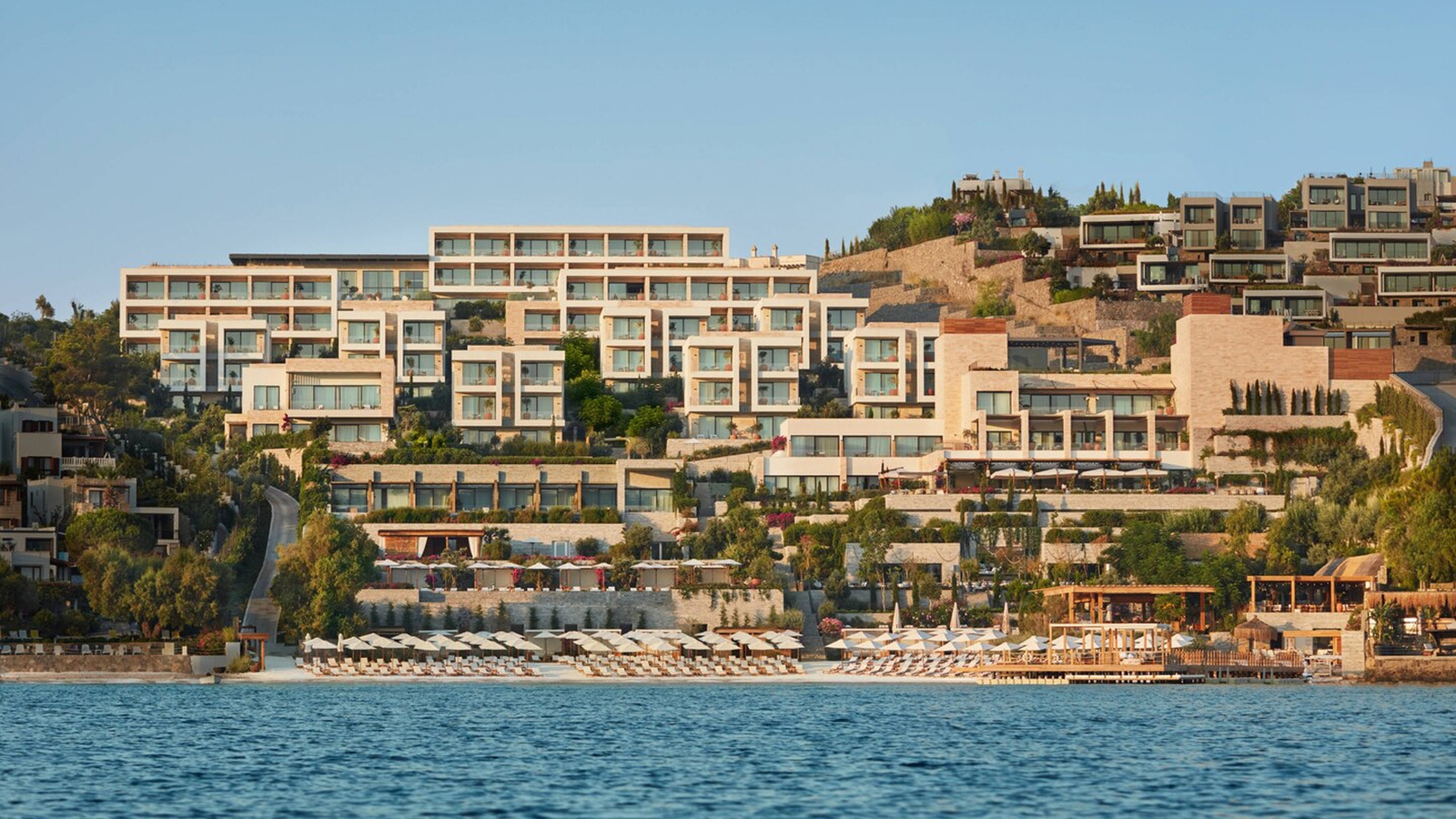 Blessed with a perfect position on the banks of the Turquoise Coast, this stylish boutique hotel of various levels appears to almost spill out onto a private beach, providing its guests with direct access to the sea. The sprawling levels feature all-encompassing terraces, manicured lawns and turquoise pools, shaded by over-arching olive trees, or trellises, dappled with bougainvillea and foliage.