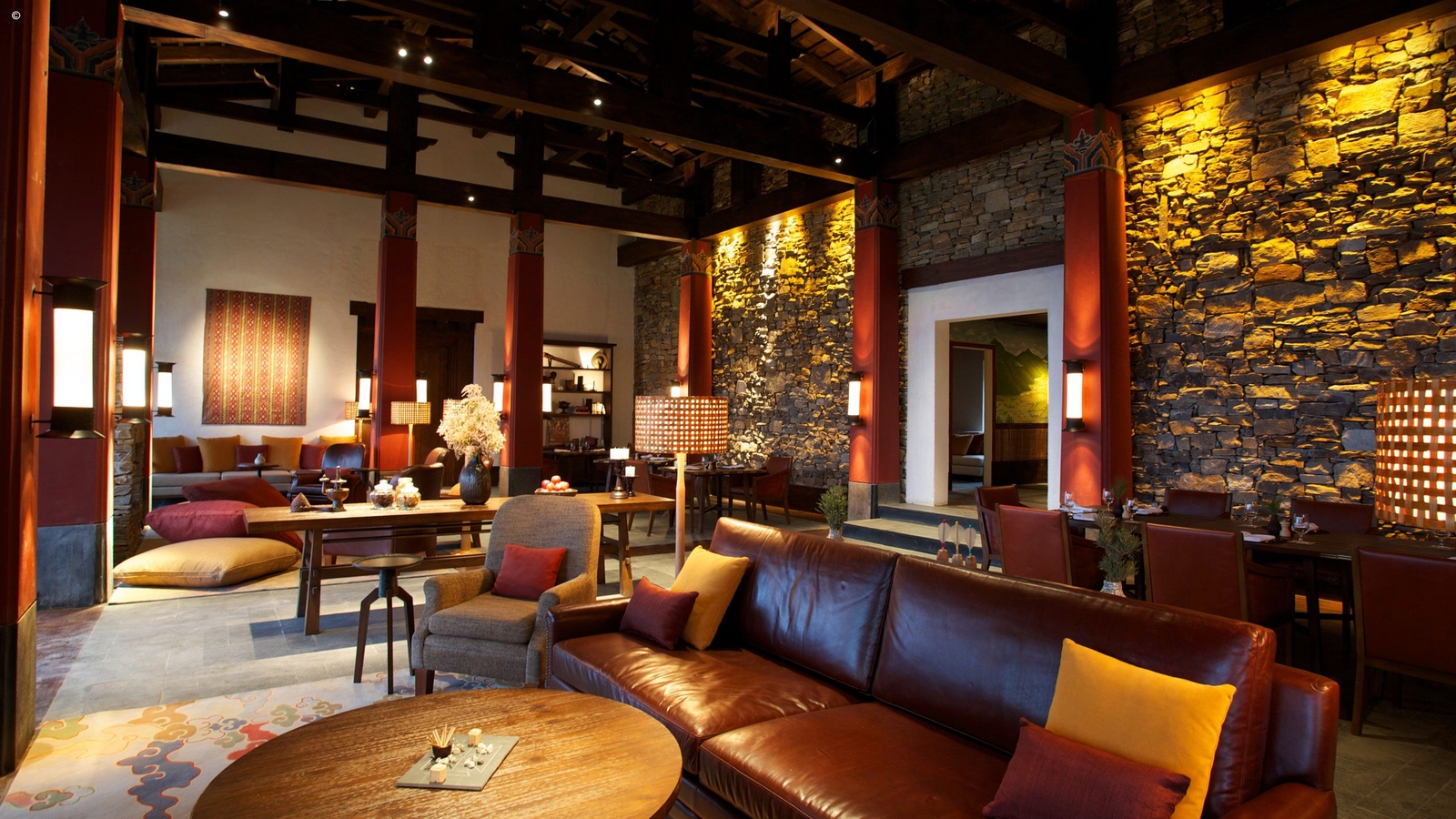 The intimate, boutique hotel has just 12 exquisitely appointed rooms, each reflecting the kingdom’s rich cultural heritage. Guests will find a mellow fireplace and cosy fabrics in earthen tones warming their rooms, as well as ornate, traditional decorations which deepen the feeling of an authentic Bhutanese experience.