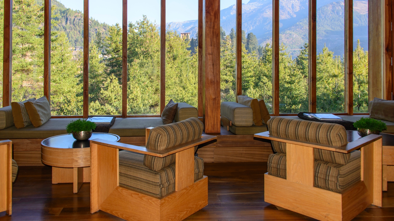 Situated in Balakha Village, the Amankora Paro contrasts rustic elements with contemporary design. Its pleasing features include natural rammed-earth walls, gently sloping roofs, wood-panelled interiors and spectacular views of blue pine forests, the 17th-century Drukyel Dzong and Mount Jhomolhari.