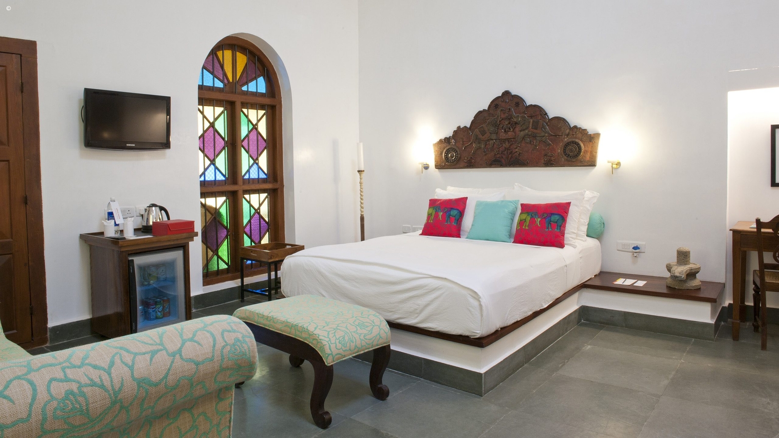 All rooms and suites come with a terrace or balcony that looks out over the water where boats glide up and down and palm trees sway in the breeze. Whitewashed walls keep rooms bright and cool, perfectly complimented by colourful textiles, antiques and intricate wooden carving.