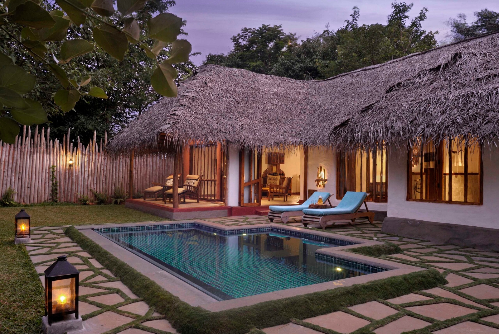 Although each room has minor design variations, all share the same elegant and comfortable features. The Safari Hut includes separate living and dining areas, an en-suite bedroom, and a private courtyard with a shallow water-jet pool, providing a perfect retreat for privacy. Drawing inspiration from the traditional Kuruba homes, the Pool Huts are ideal for peace and tranquility. The Pool Reserve features spacious living and dining areas, a private courtyard with a heated pool, and a unique Star Bed for stargazing under the clear Kabini night sky.