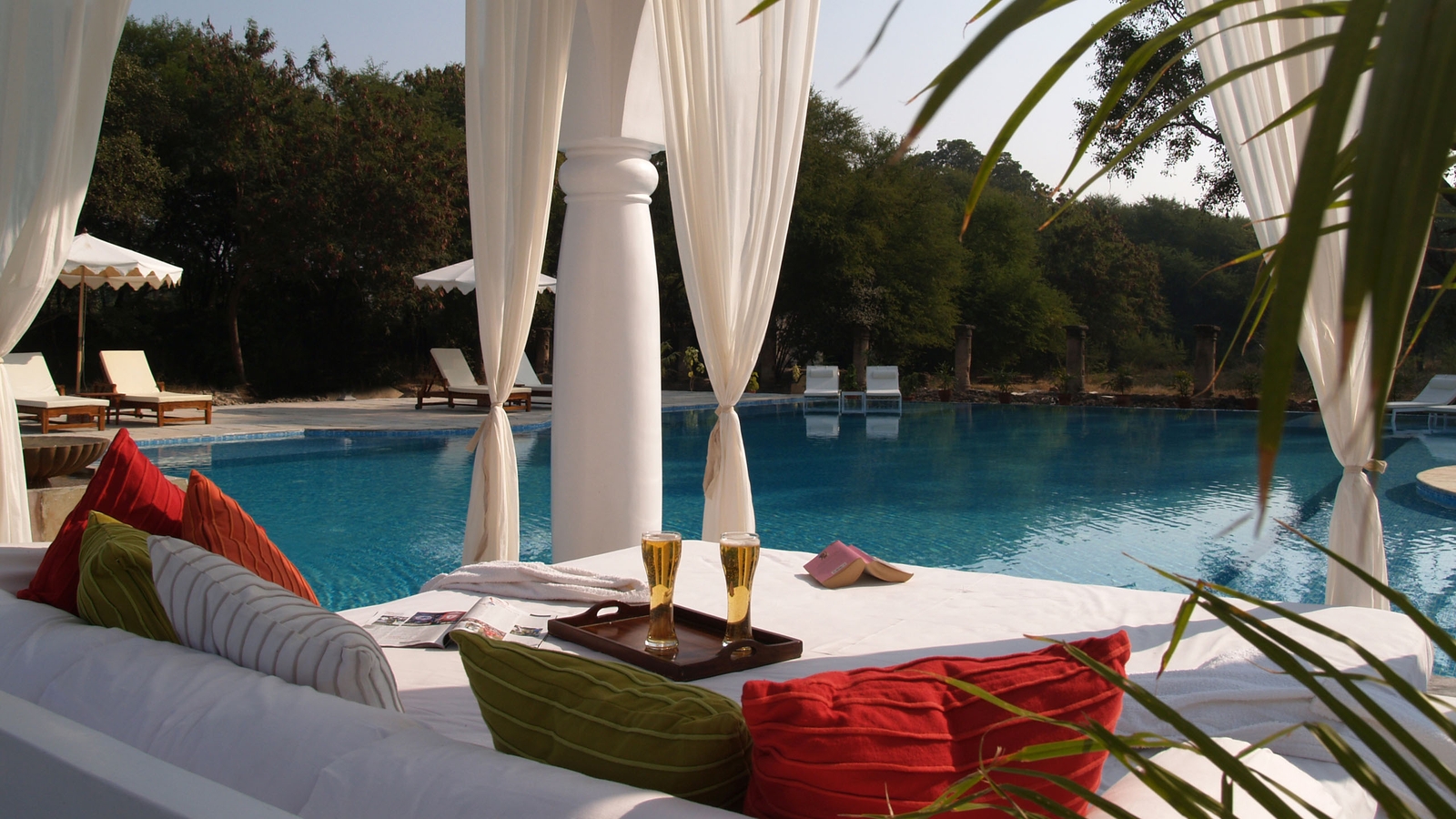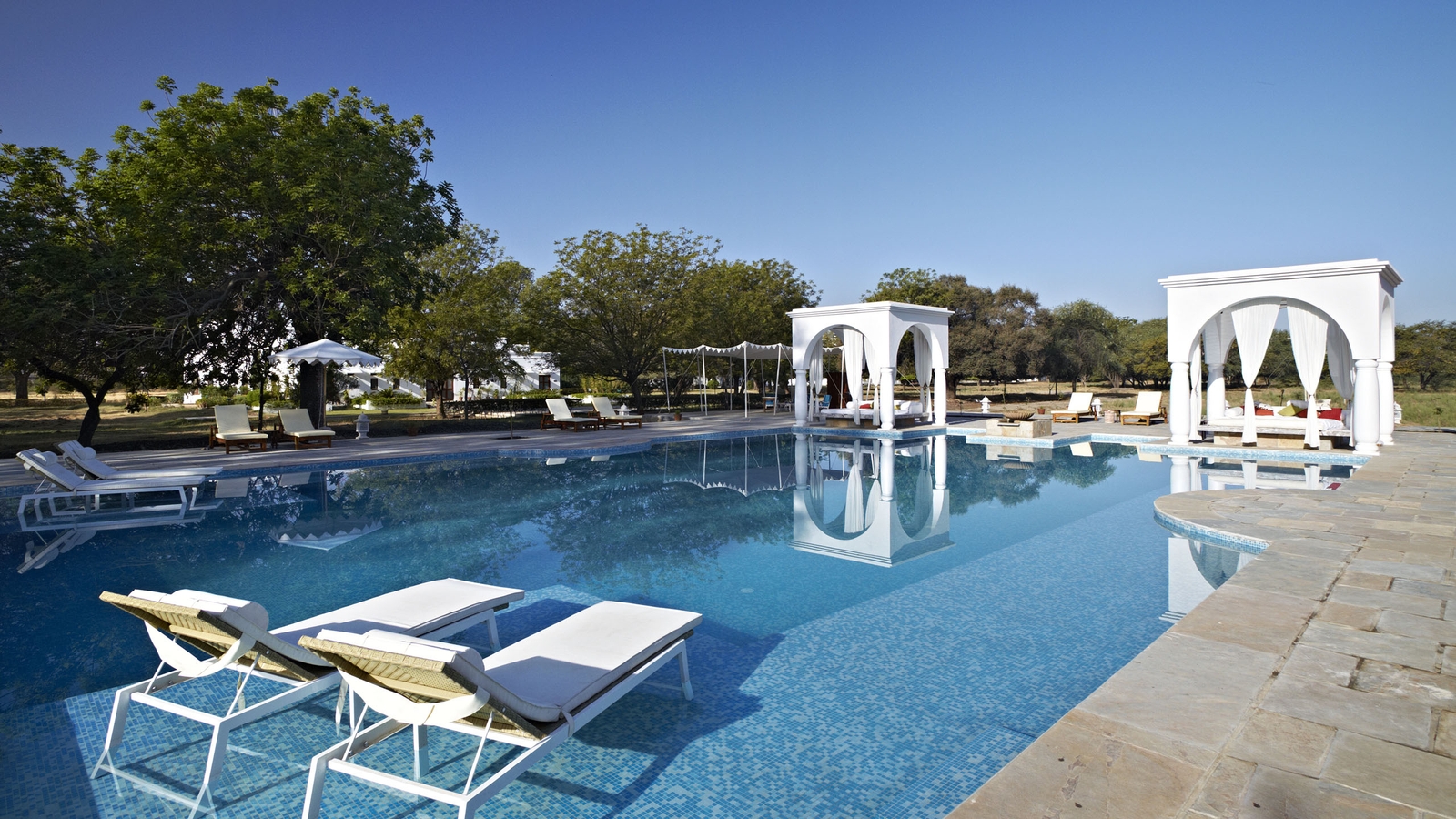 Life is unhurried here, and you could spend all day lazing by pool, exploring the working estate on walking trails and picnicking before a lazy sundowner. You can also boat on the lake, visit nearby forts and temples, or go birdwatching. Dining is also a real highlight with home made Rajasthani, continental and traditional meals created by a chef who has cooked for three generations of the family.
