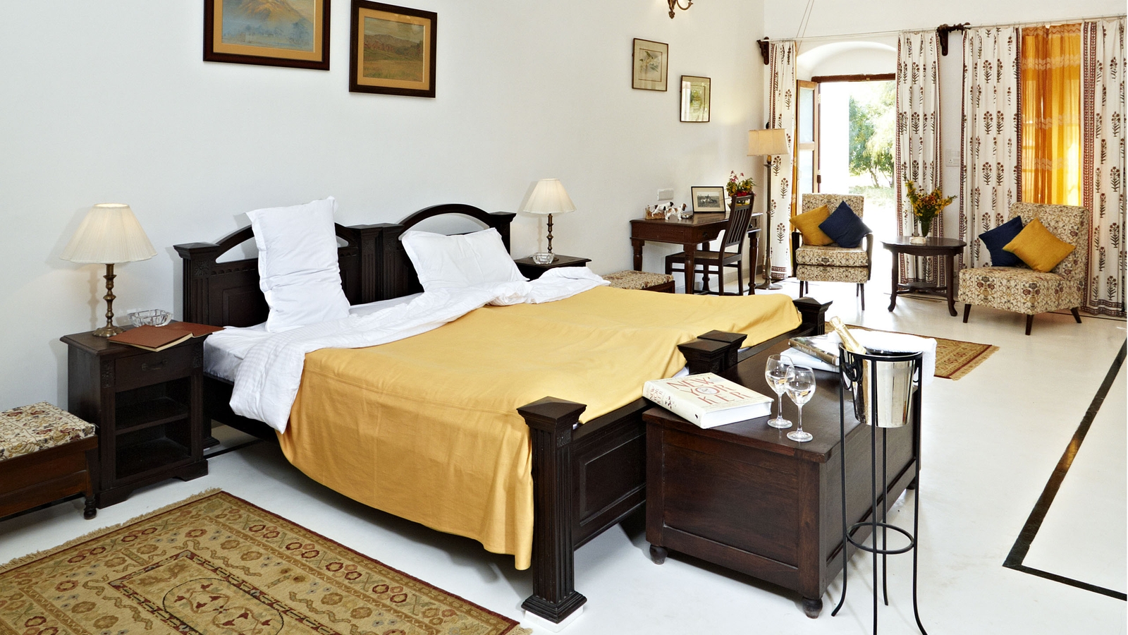 Shahpura Bagh, once the summer residence of the Rajadhiraj of Shahpura, may not be the grandest of the palaces, but it is certainly one of the most charming, whose resident family and staff will treat you as most welcome guests. Located next to a lake which was created by the Rajadhiraj to bring water to his people over 100 years ago and surrounded by acres of gardens and pasture, it is the ideal spot to rest and get a feeling of timeless Rajasthan while travelling between Jaipur, Udaipur and beyond.