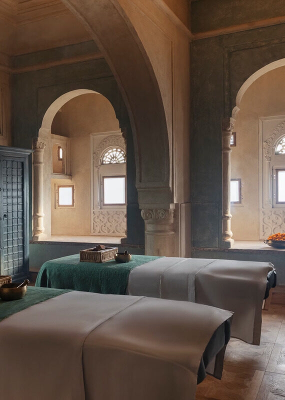 If you’re looking to combine history and relaxation, Six Senses Fort Barwara is an ideal choice. Housed in a grand 14th-century fort in rural Rajasthan, it exudes a regal ambience everywhere from its sumptuous suites to its elegant restaurant. The enormous spa offers 2,800 square metres (30,000 square feet) of pools, saunas, treatment rooms, fitness areas and spaces dedicated to yoga and meditation.