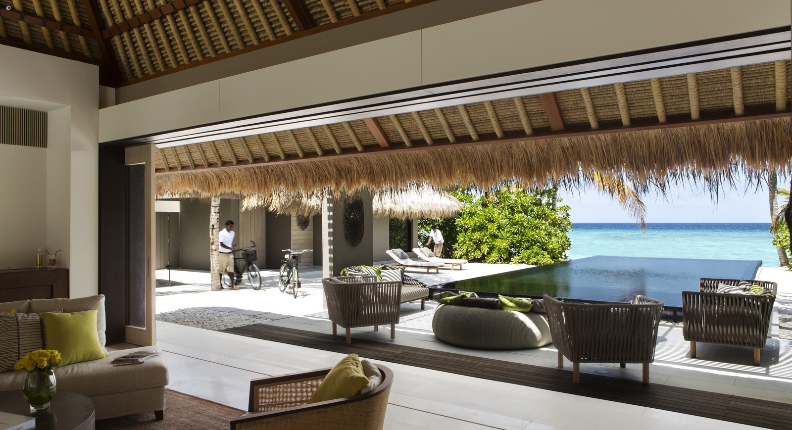 Every element of the resort oozes chic style, from the sand-disc artwork to the palm-fringed slate-lined pool and marbled bar. The 45 villas, each with its own private infinity pool, overwater deck, private beach and exquisite bathroom, have drawn celebrities and royalty including Prince William.