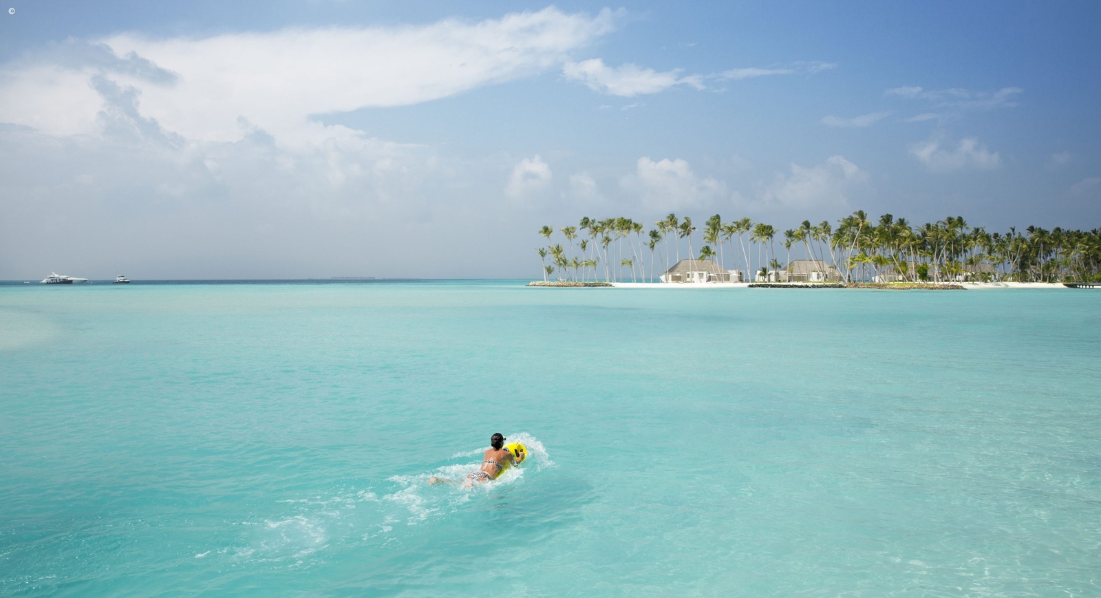 Travel 40 minutes by seaplane from Malé to reach this eye-pleasing oasis. Guests can pamper themselves with spa treatments, an onsite hair salon and impeccable service with each villa assigned its own butler and concierge.