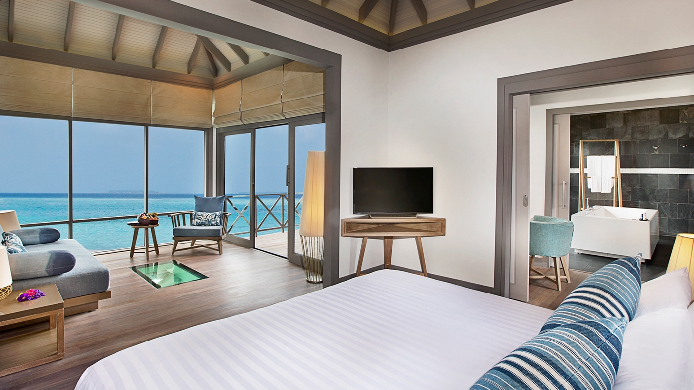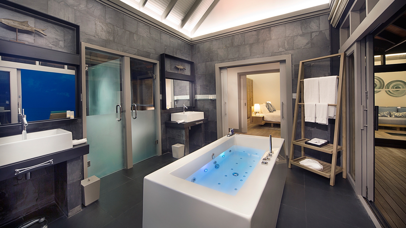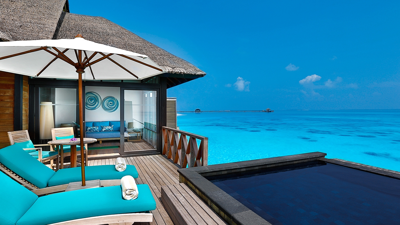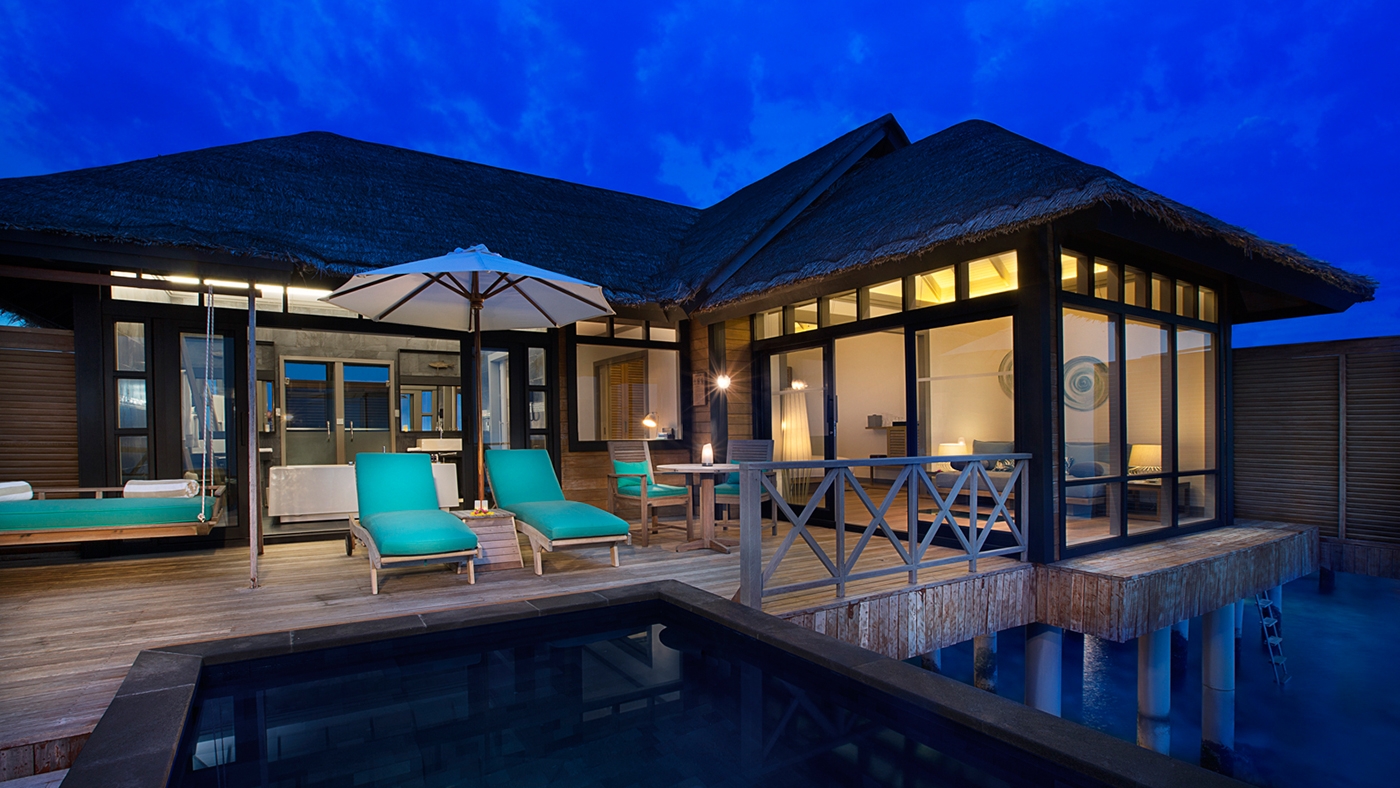 There are a collection of 84 over-water villas, beach bungalows, suites and secluded residences, all with their own pools and largest of which has three bedrooms and its own spa.