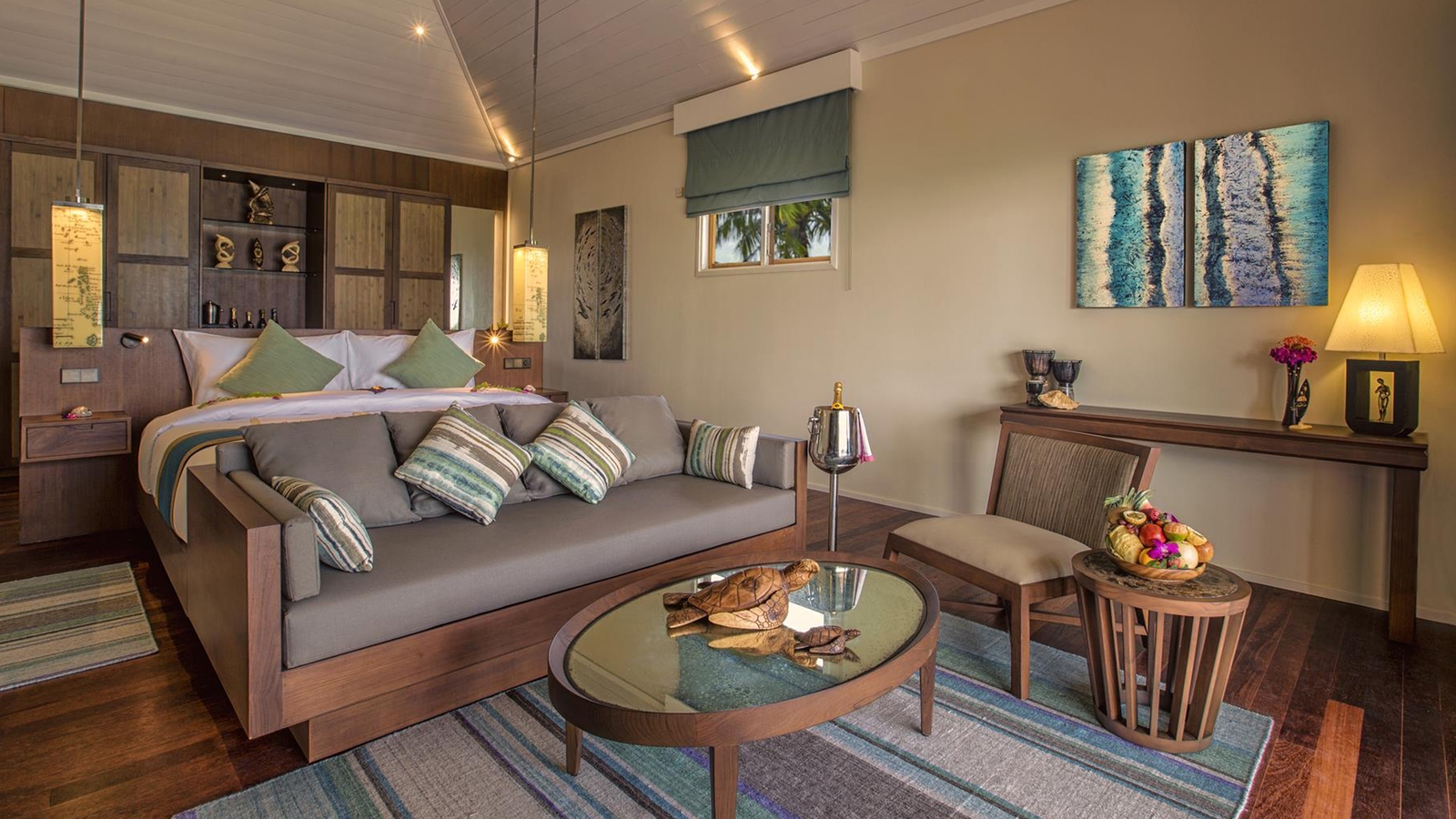 The resort consists of a selection of beach, lagoon and over water villas. Beach villas are nestled among the lush, tropical vegetation so you can drift off to sleep to the sound of swaying palms. Lagoon and over water villas offer direct access to the turquoise waters of the Indian Ocean. Wooden walkways connect the villas to the main areas of the resort.