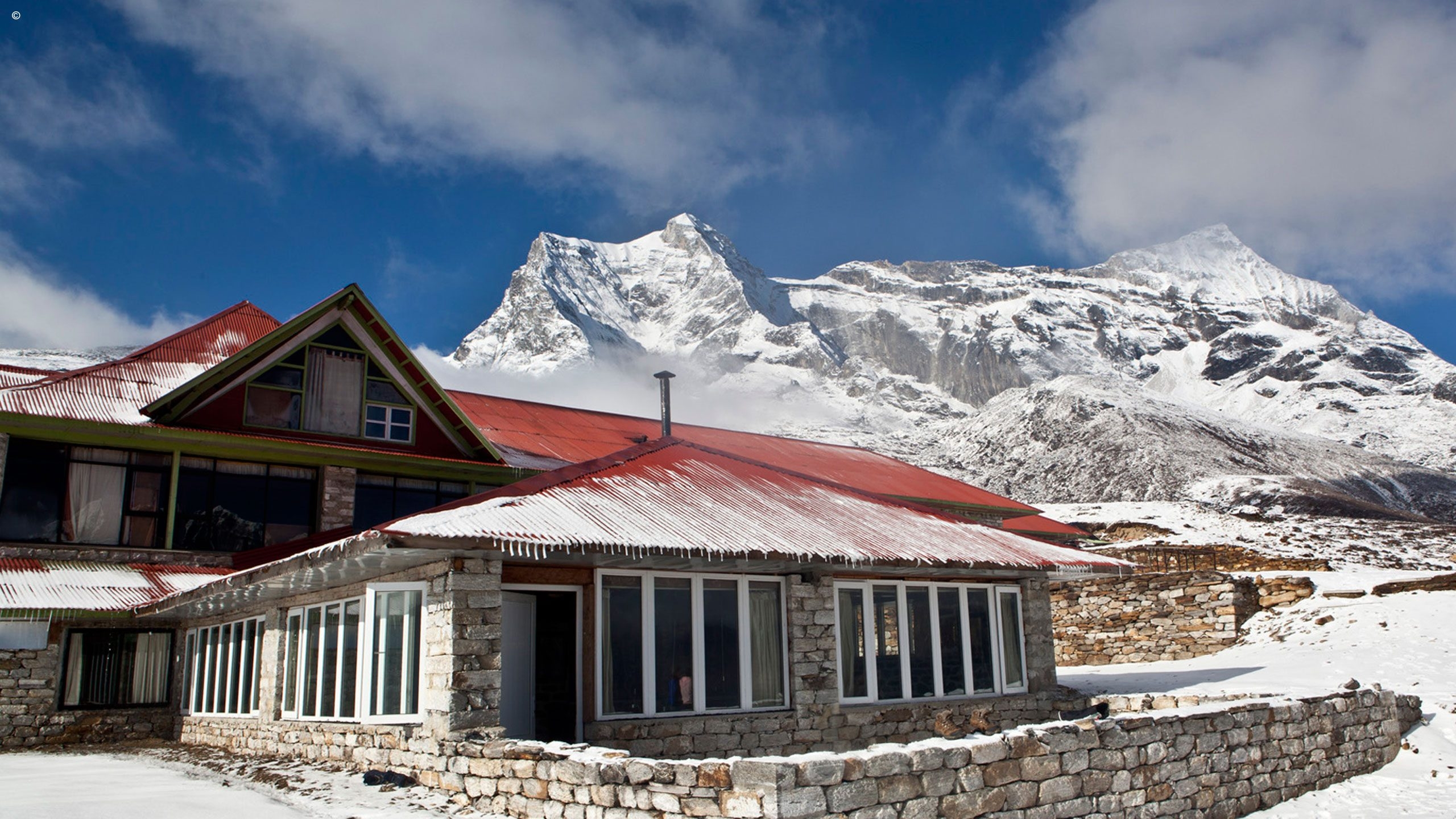 Weary trekkers are well looked after here with 12 comfortable rooms which are finished with a combination of traditional Khumbu and modern style, featuring natural wood. The views are spectacular.