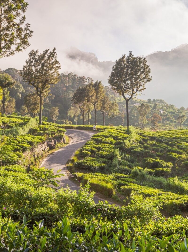 A train winds its way slowly through undulating hills blanketed in green. Dotted across lush-ranked fields, women quickly but meticulously harvest leaves by hand, baskets slung across their backs. Stretching across the island’s midsection, this is Sri Lanka’s tea country and quite possibly the origin of your favourite morning cuppa.