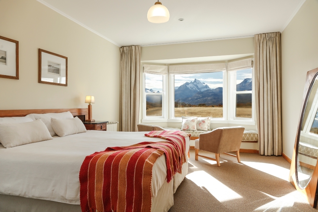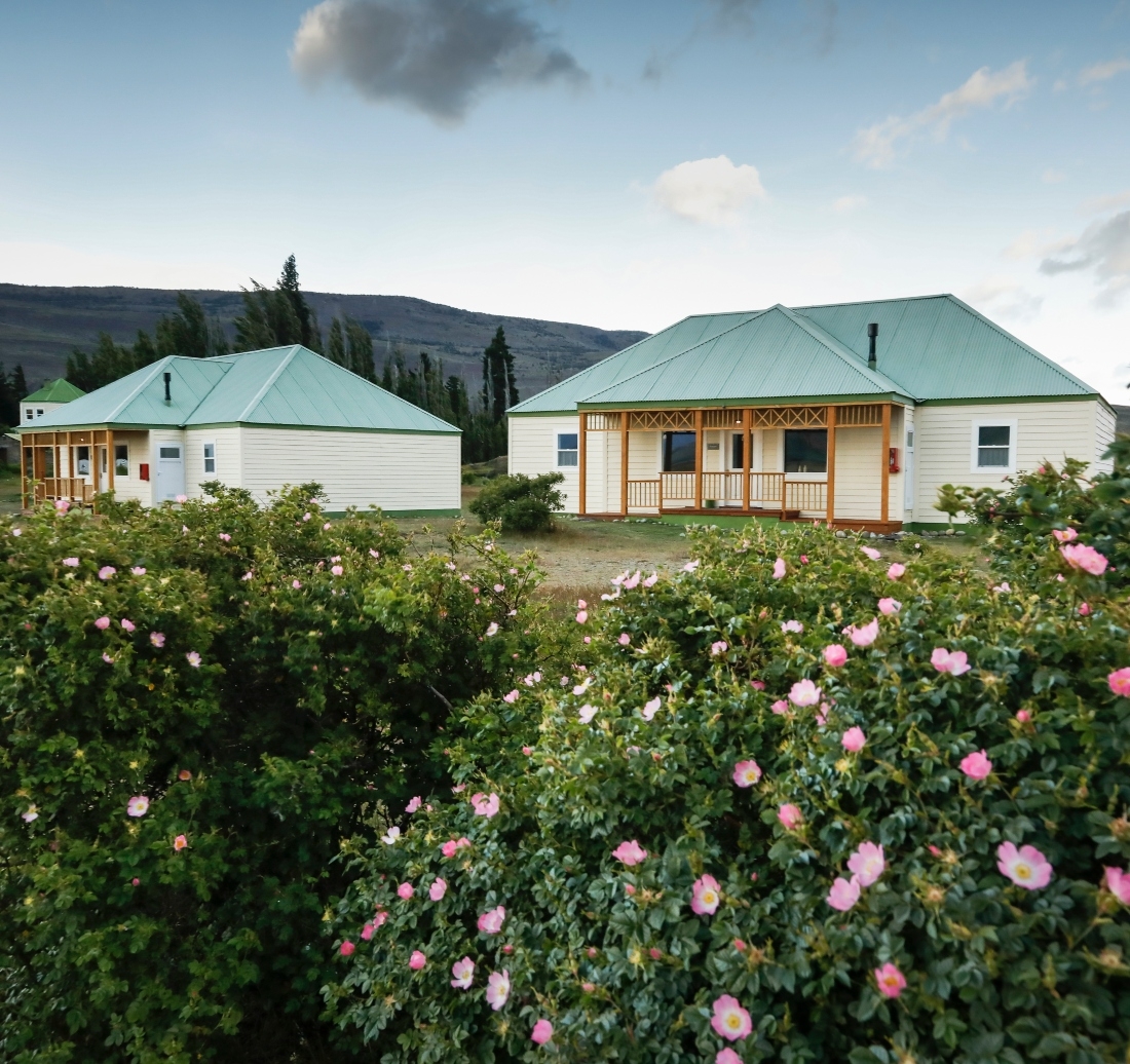 Estancia Cristina boasts 20 rooms, thoughtfully divided among five cosy cabins. Each cabin houses four private suites adorned with warm fabrics and expansive picture windows, perfect for soaking in the spectacular scenery. The heart of the estancia is the main lodge, where you’ll find a charming restaurant offering a curated wine menu featuring selections from premier Argentinian wineries, all while enjoying a breathtaking 360-degree view of the Río Caterina valley.