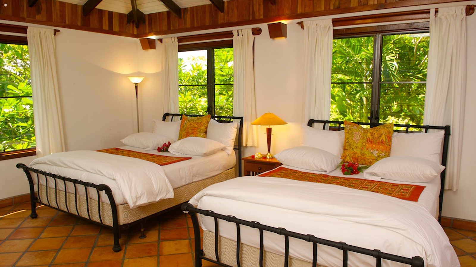 Though very much in the rainforest, the boathouse at the banks of the lush river at the base of the hill, houses a speedboat that can whisk you to the calm clear waters of the Caribbean for snorkelling, swimming and fishing in the cayes.