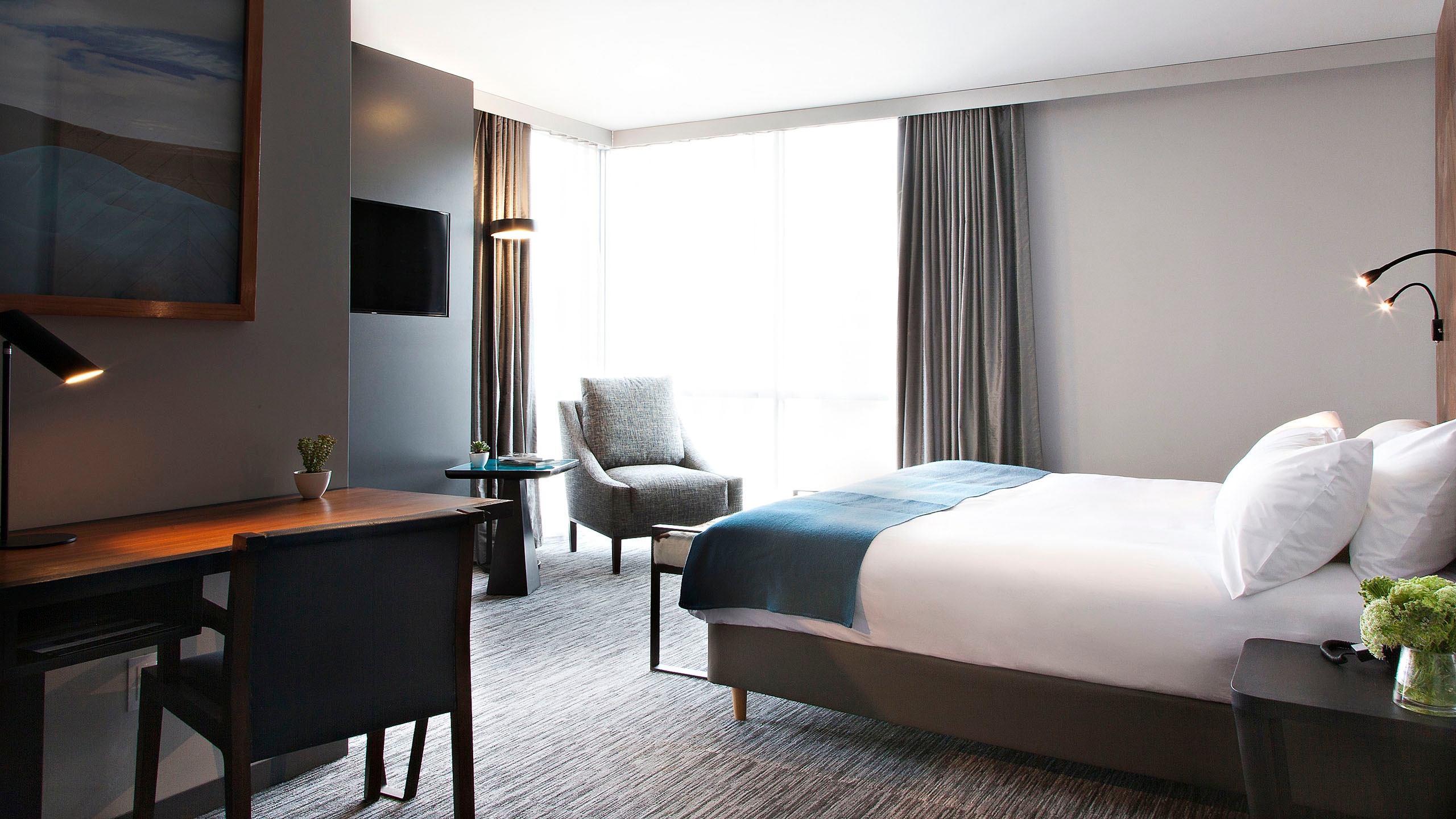The hotel, which is shaped like a parallelogram, is clad in native Bolivian wood and Comanche stone from a village of the same name 70km outside the city. Inside is no less impressive with photography and artwork from Bolivian artist, Gastón Ugalde, throughout. There are 53 modern, spacious rooms that look out over the mountains that surround the city, that are simple and sophisticated in design.