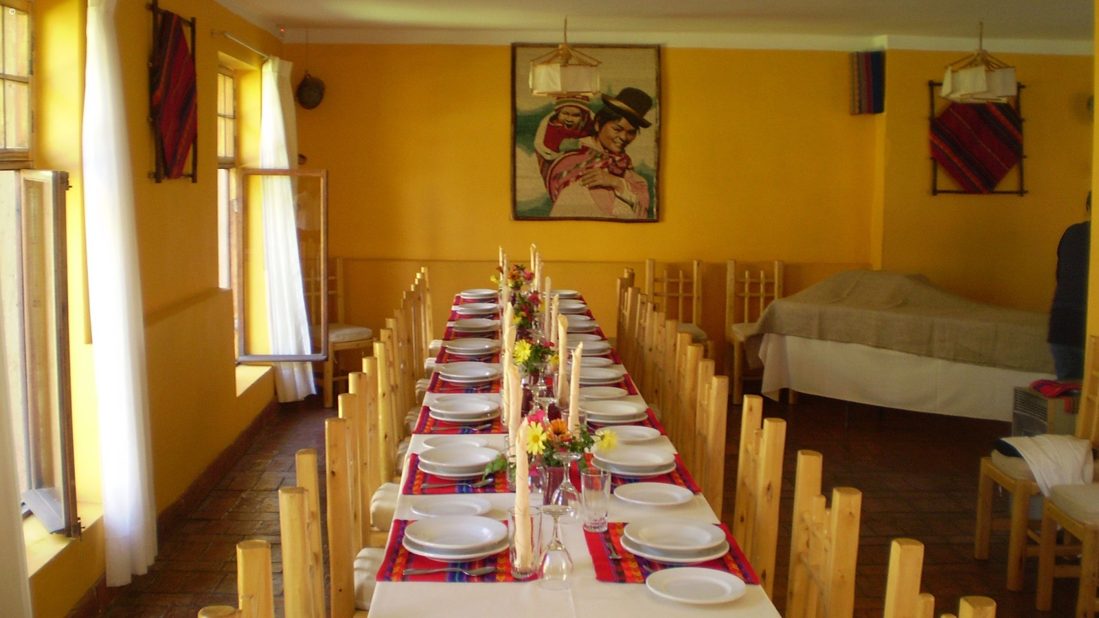 The rooms all have private bathrooms served with hot water and heating from the hotel’s solar panels and are decorated with restored antiques and locally-made furniture.