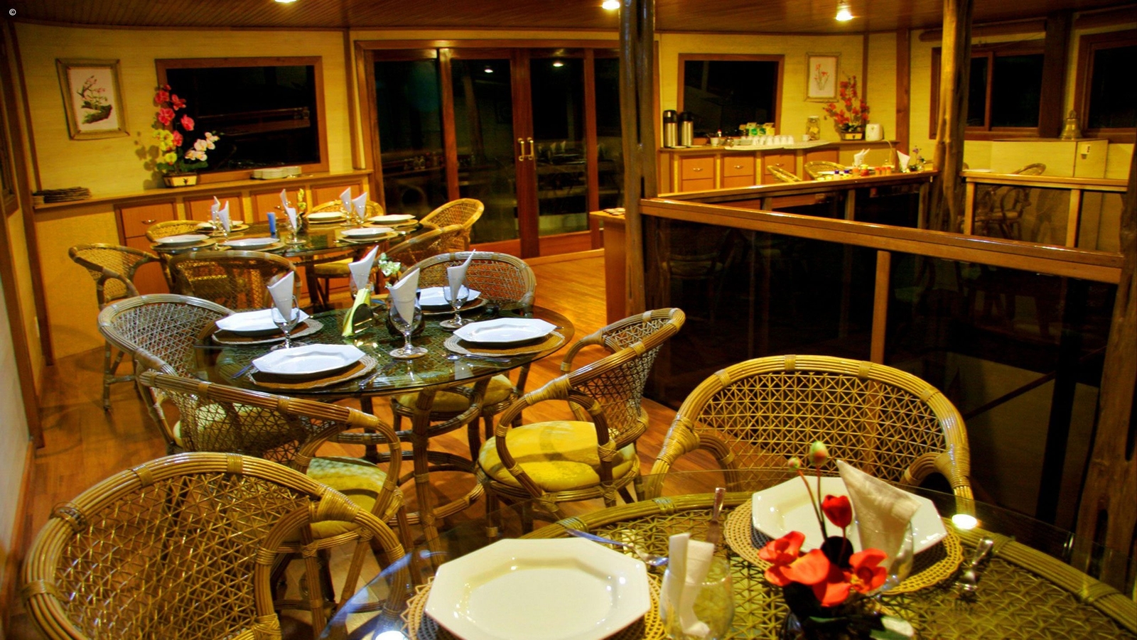 Sixteen air conditioned cabins with private bathrooms