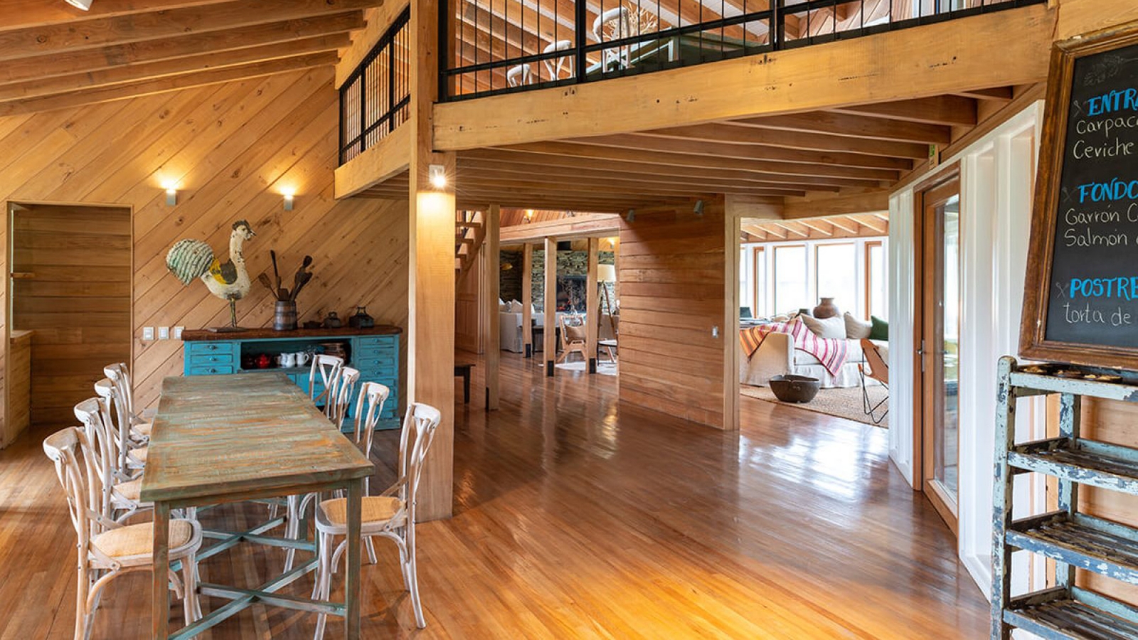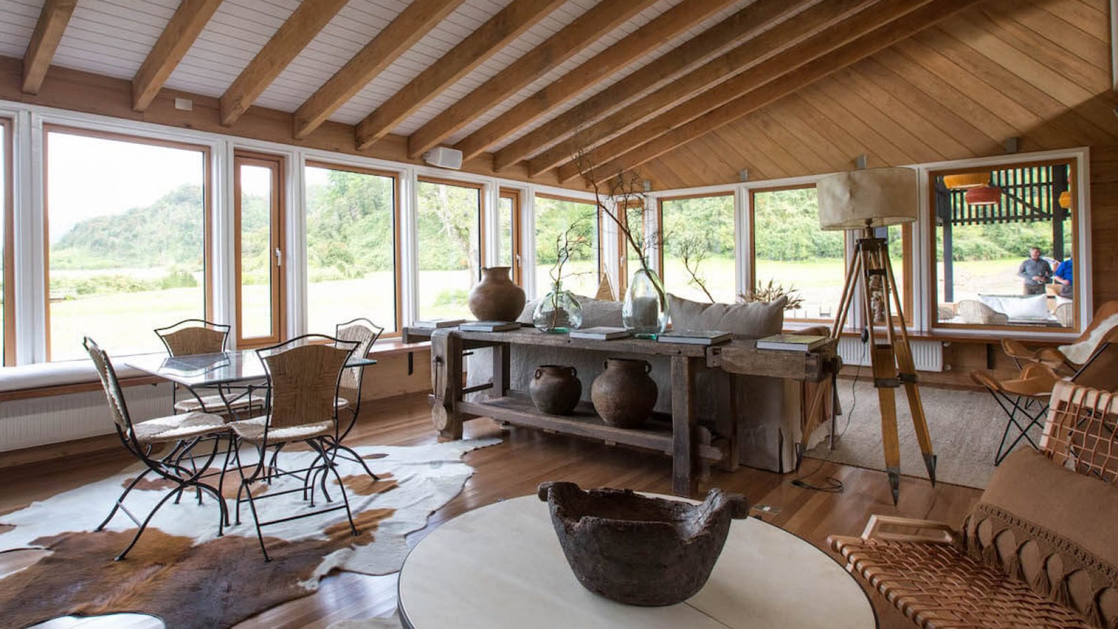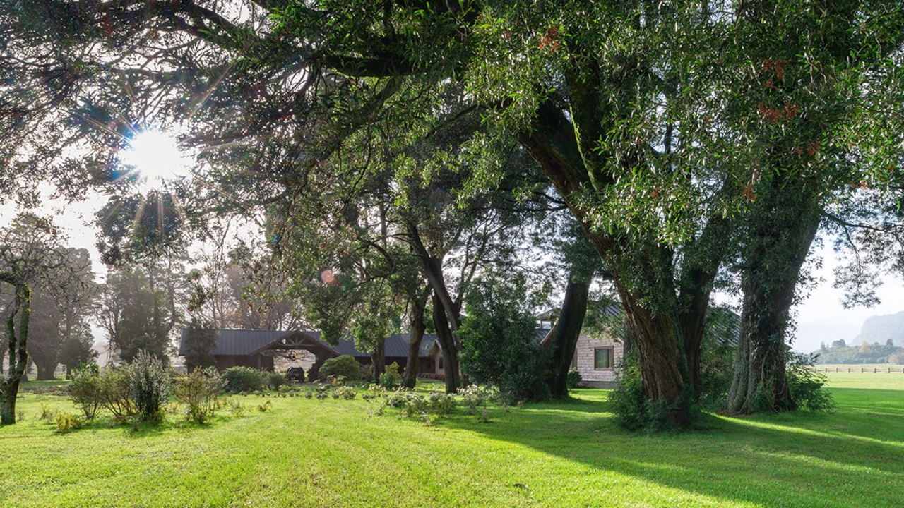 The architecture of the hotel was created with the traditional barns and stables of southern Chile in mind, and the 16 rooms, each inundated with natural light, feature soft furnishings, colourful textiles, and timber beams. Unparalleled vistas of the Patagonian Andes or the gardens can be enjoyed from the rooms, as well as from the sweeping terrace, built off the main area of the hotel. A snug communal living room, centred around a grand stone fireplace, can also be found here, along with the on-site restaurant, El Mesón del Caulle, serving Patagonian classics and a hearty breakfast spread each morning.