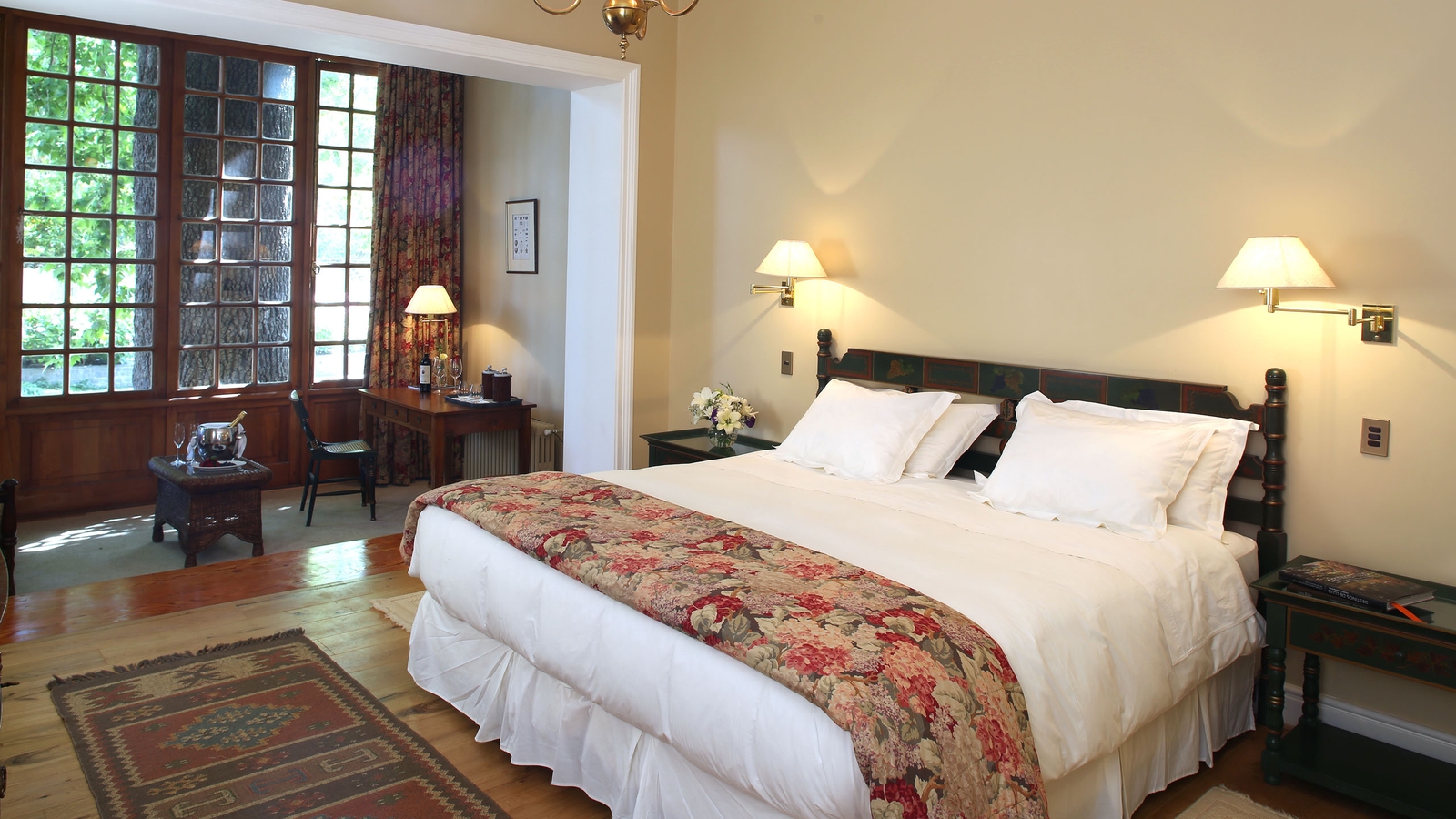 Among beautiful and expansive gardens, find the old landowner’s elegant house, now converted into the Casa Real Hotel. There are 16 rooms, each comfortable and traditional with antique furniture and lofty ceilings.