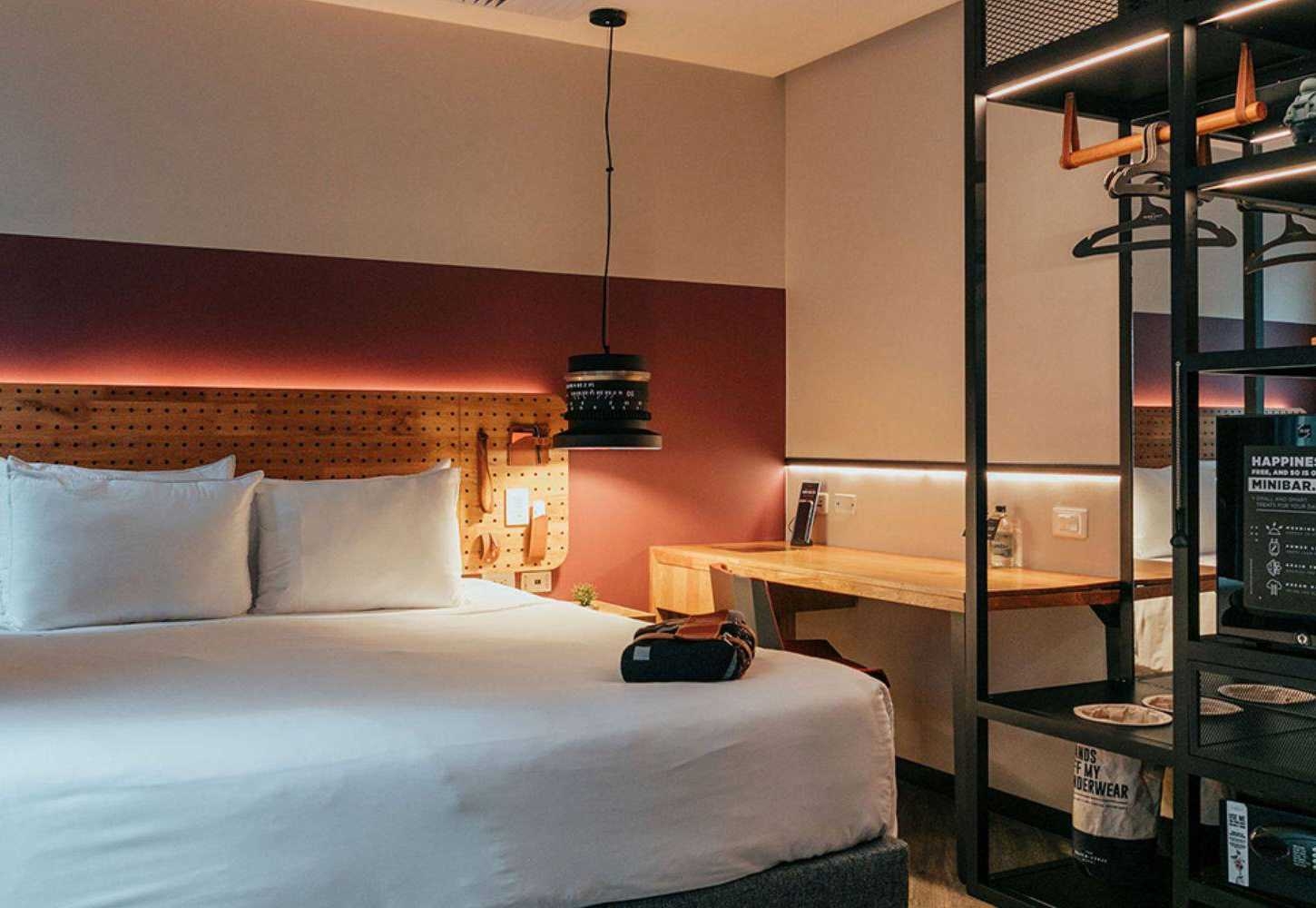 Despite the industrial feel there are plenty of plants and trees within the main courtyard, and continued into the main lobby creating outdoor, indoor atmosphere. The hotel boasts 5 exclusive restaurants: Egeo serving Greek food, Mekong for fans of Thai, Big Bao for takeaway and Click Clack Kitchen, a responsible and healthy cuisine option. There’s also a gym and access to wellness treatments.