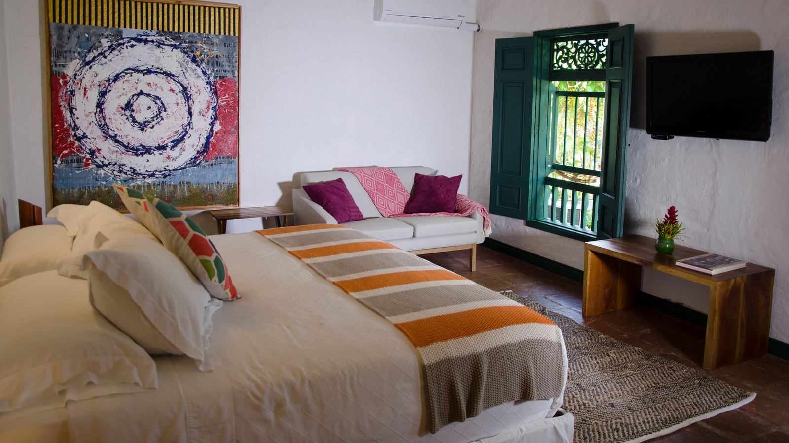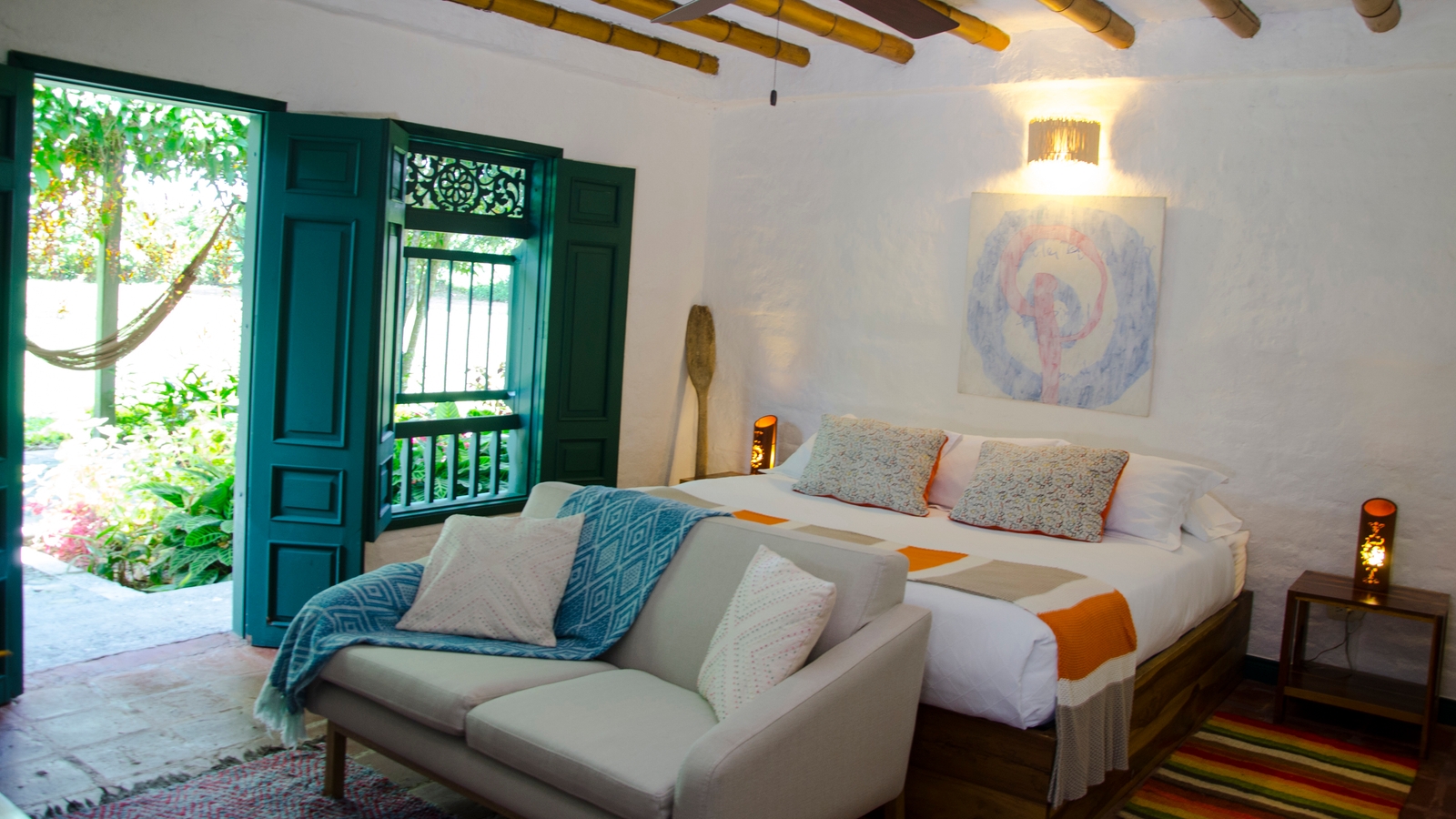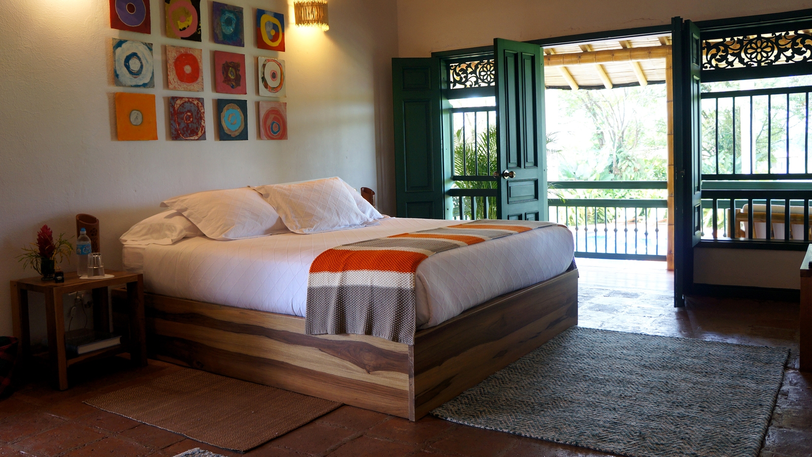 The main house, built in the vernacular style with bamboo guadua and clay tiles, has just eight rooms. Each has a private bathroom, balcony, a small sitting area and a hammock for lazy afternoons listening to the birds before dinner is served.