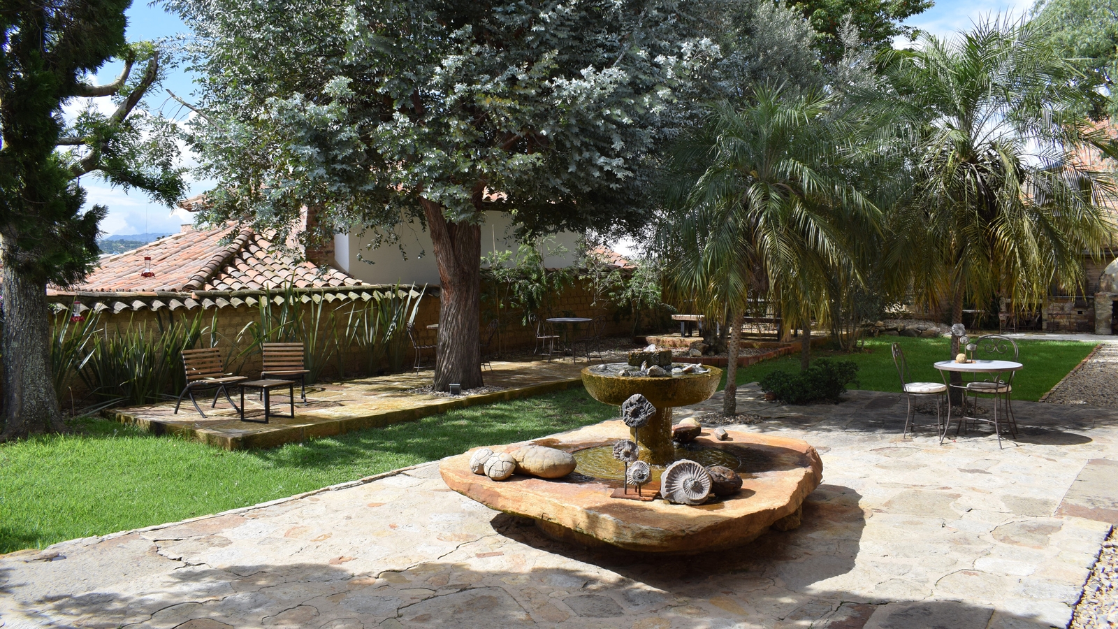 Seven bright rooms are filled with local artwork and textiles and shuttered windows that flood the space with light. Surrounded by pretty gardens this tranquil hideaway is the perfect place to relax with a cup of Colombian coffee while the birds come and splash in the fountain.