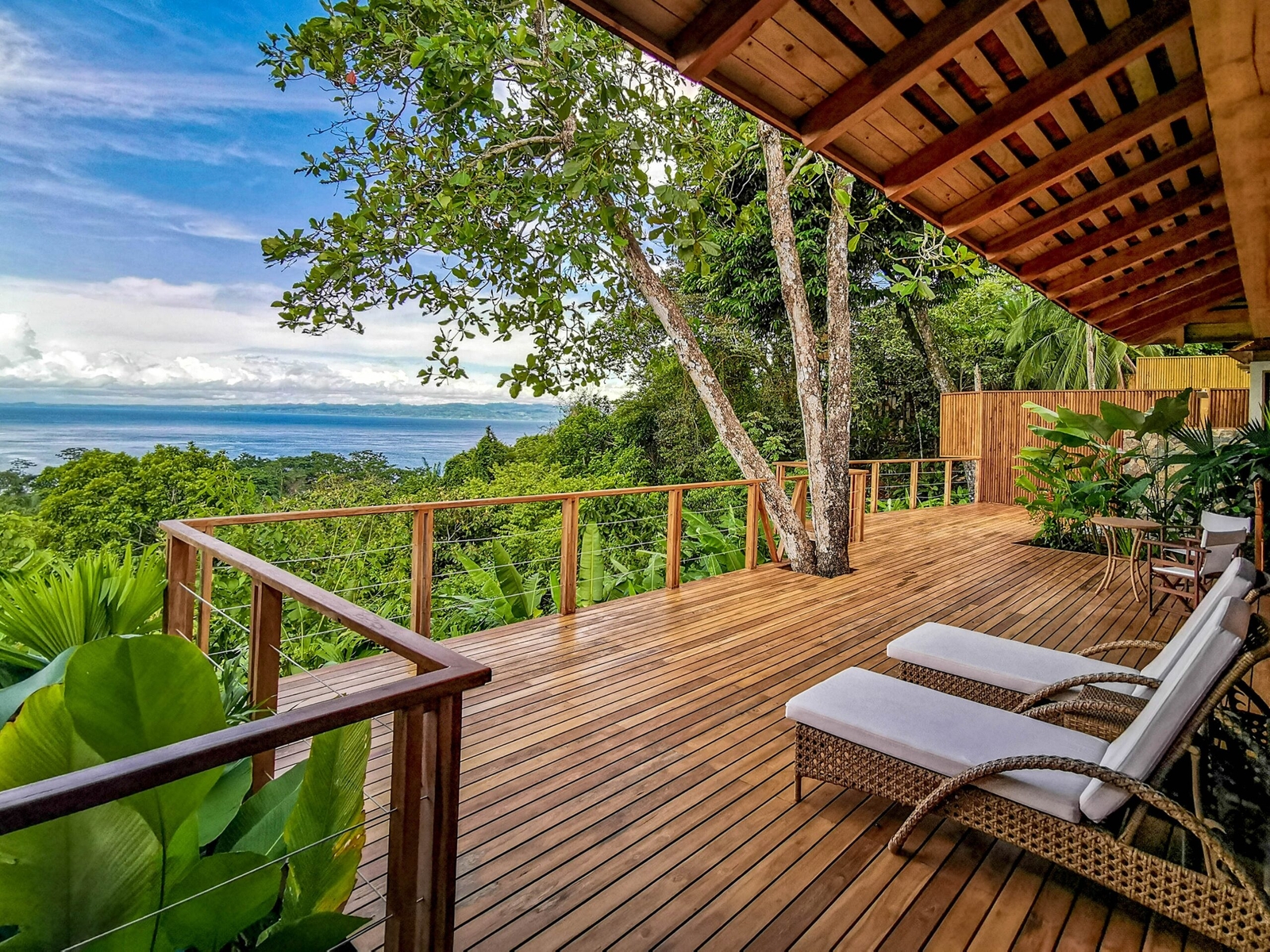 The hotel and each bungalow have sweeping views of the Pacific and rainforest canopies, and it’s a short downhill walk to a quiet and beautiful beach for a dip in the ocean.